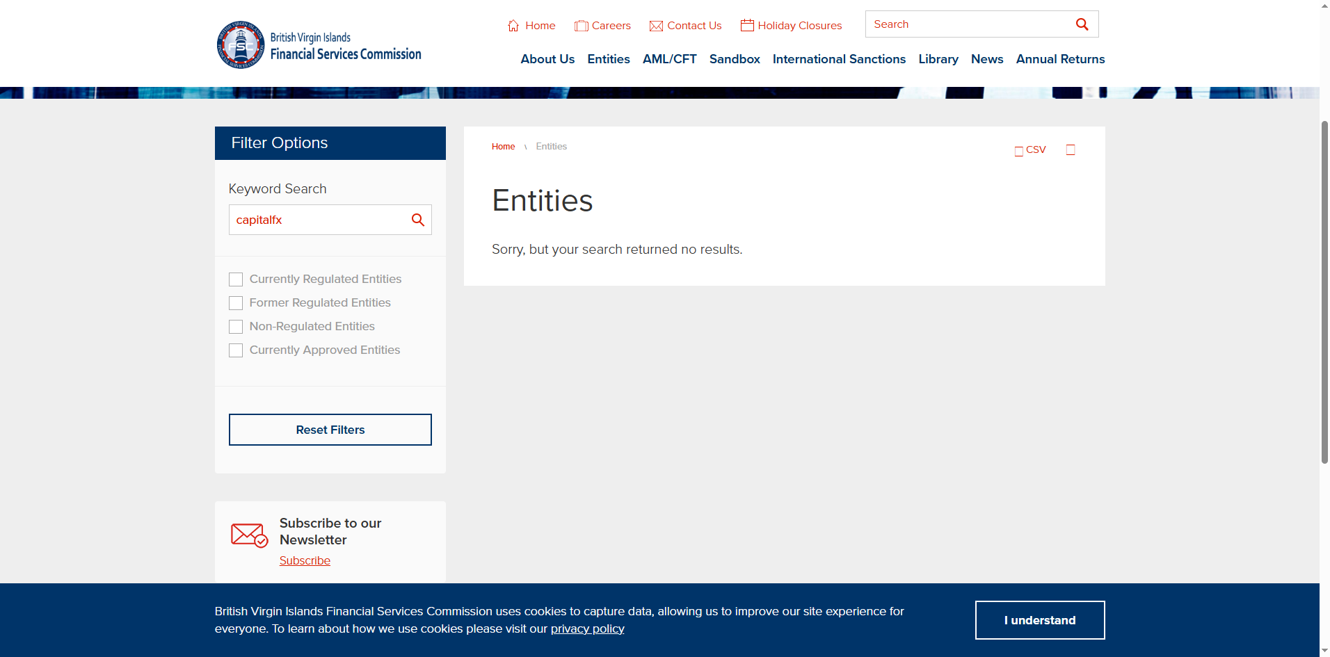 Furthermore, the platform also claims to be authorized by the British Virgin Islands Financial Services Commission (BVI FSC). Upon checking the BVI FSC’s public registry, we were unable to locate any license or authorization associated with Capital FX under that jurisdiction either.