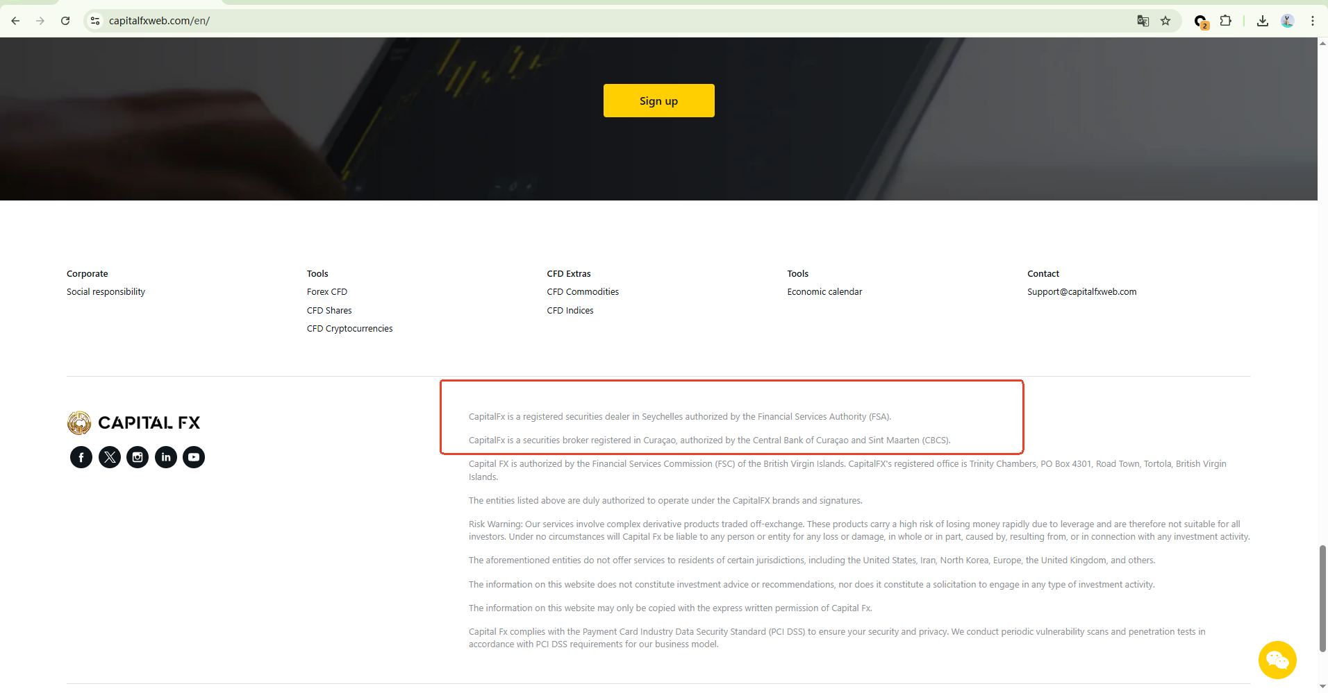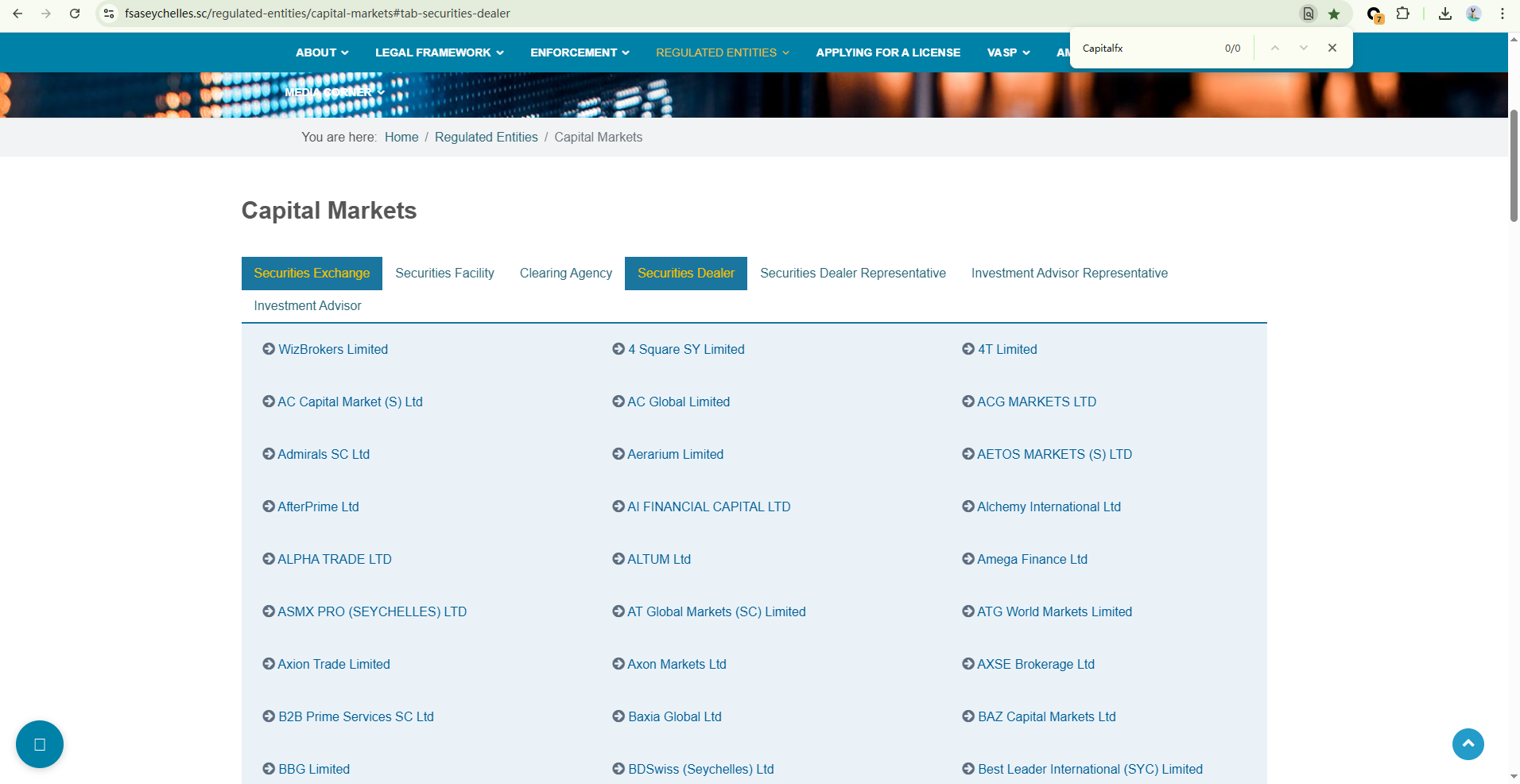 Capital FX claims to be regulated by the Seychelles Financial Services Authority (FSA). However, the platform does not disclose the name of its underlying legal or operating entity, making verification impossible. We conducted a thorough search using the brand name "Capital FX" in the Seychelles FSA’s official register of licensed entities, but found no matching result.