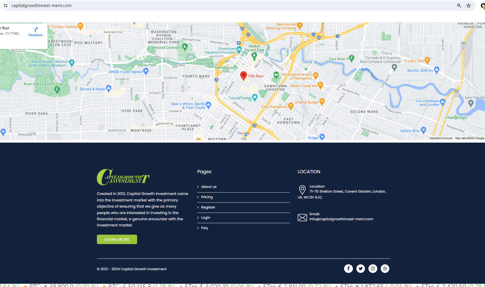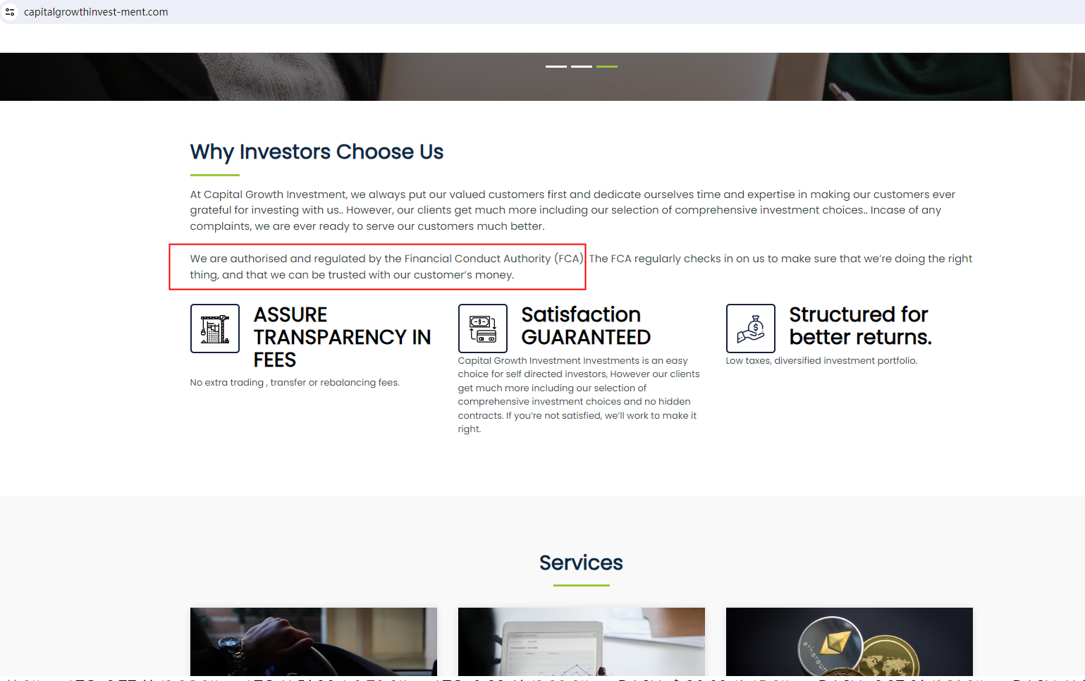 Capital Growth Investment purports to be authorized and regulated by the Financial Conduct Authority (FCA). However, this claim has been refuted by the FCA itself, which has issued a warning against this potentially fraudulent trading platform. The UK's financial watchdog categorizes Capital Growth Investment as an unauthorized firm operating within its jurisdiction.