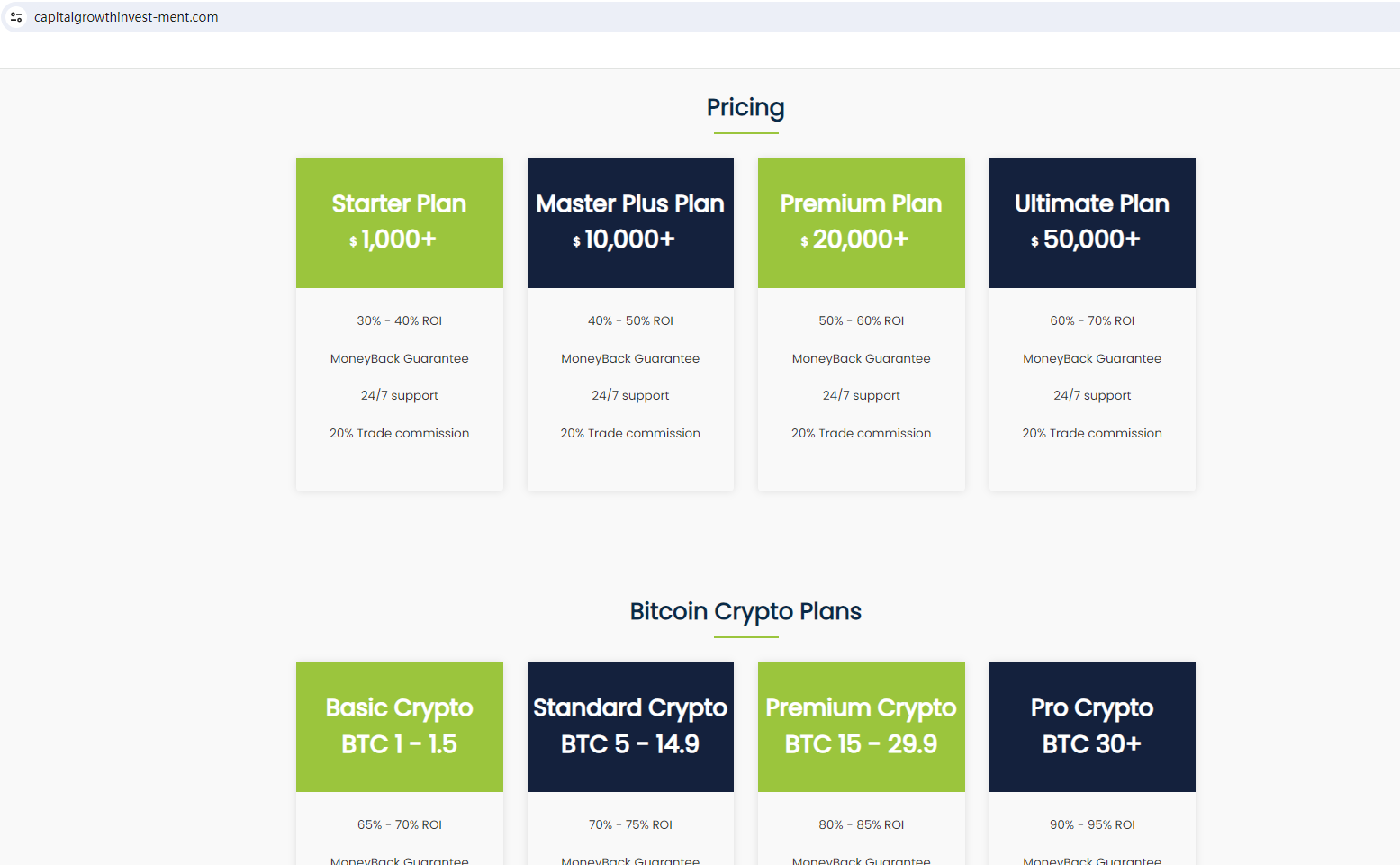 The website of Capital Growth Investment appears to be identical to that of Greenfield Network Investment, an unregulated broker that has previously been flagged by BrokersView.