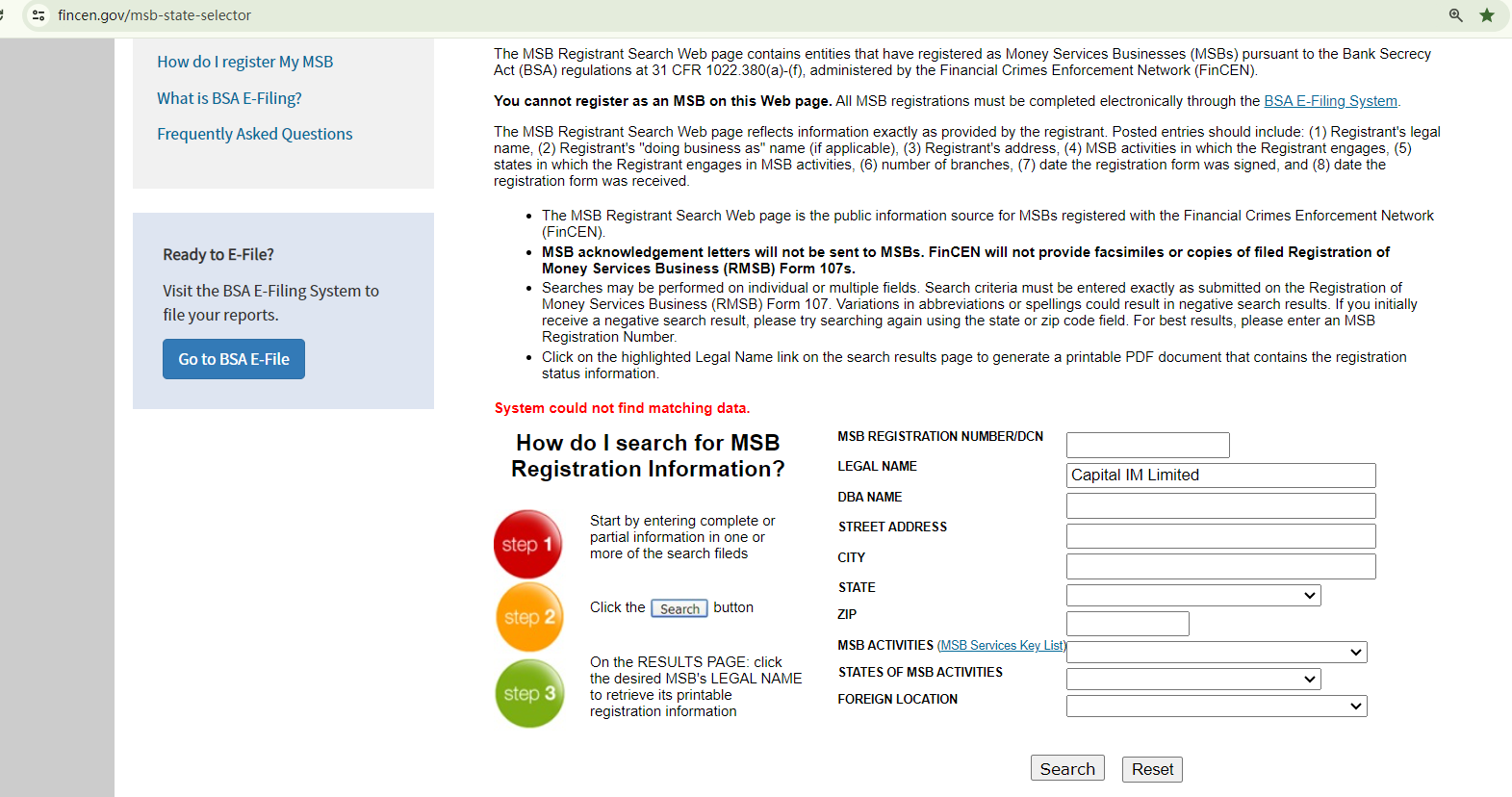 Capital IM Limited asserts its registration with the Financial Crimes Enforcement Network (FINCEN), yet a search of the FINCEN's registration database reveals no record of this company.