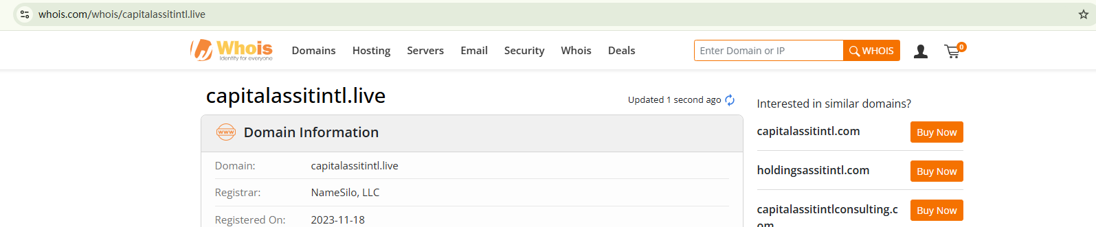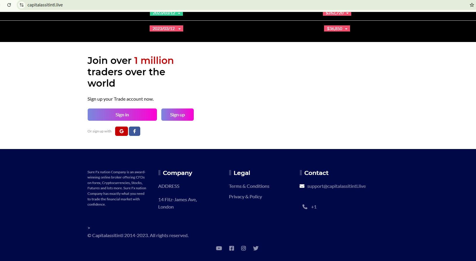 The use of a template complate commonly associated with fraudulent activities raises alarms. Capitalassitintl's domain name was just registered at the end of 2023, potentially indicating that it has emerged recently. However, this new platform continue to use the bogus content provided by the template to pretend to have big business. The company keeps investors in the dark about their true firm information, as well as failing to disclose any valid licensing details. The Financial Conduct Authority (FCA) has issued a warning against Capitalassitintl for the lack of the required authorization.