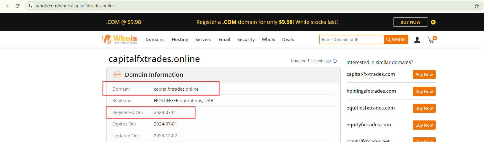 CAPITALFXTRADES presents itself as a premier platform for forex trading. However, a discrepancy arises when the domain name, capitalfxtrades.online, which was only registered in July 2023, does not align with its claim of being an industry leader. This inconsistency between the website's age and its purported standing serves as a red flag.
