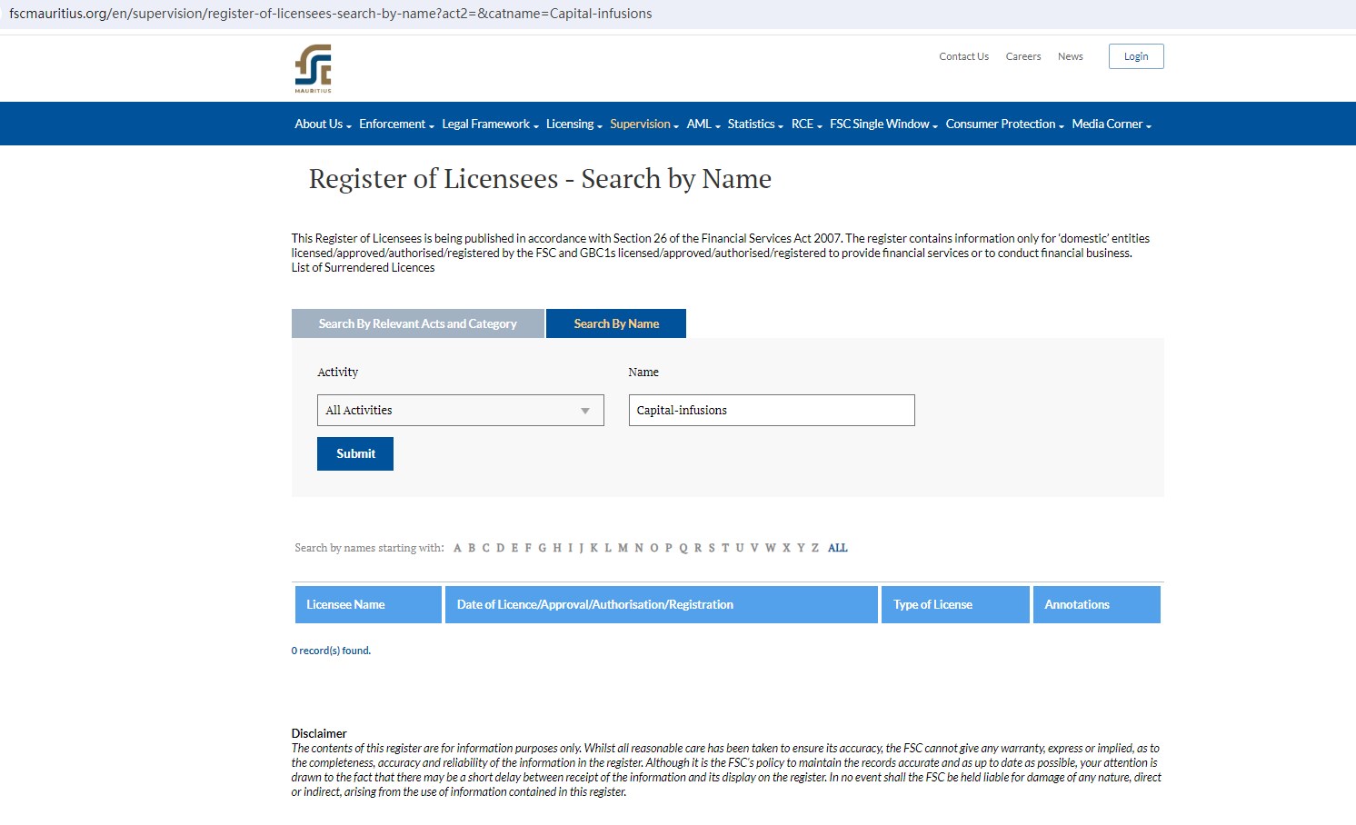 And we didn't find any results in the U.S. National Futures Association (NFA) and the Financial Services Commission (FSC) of Mauritius.