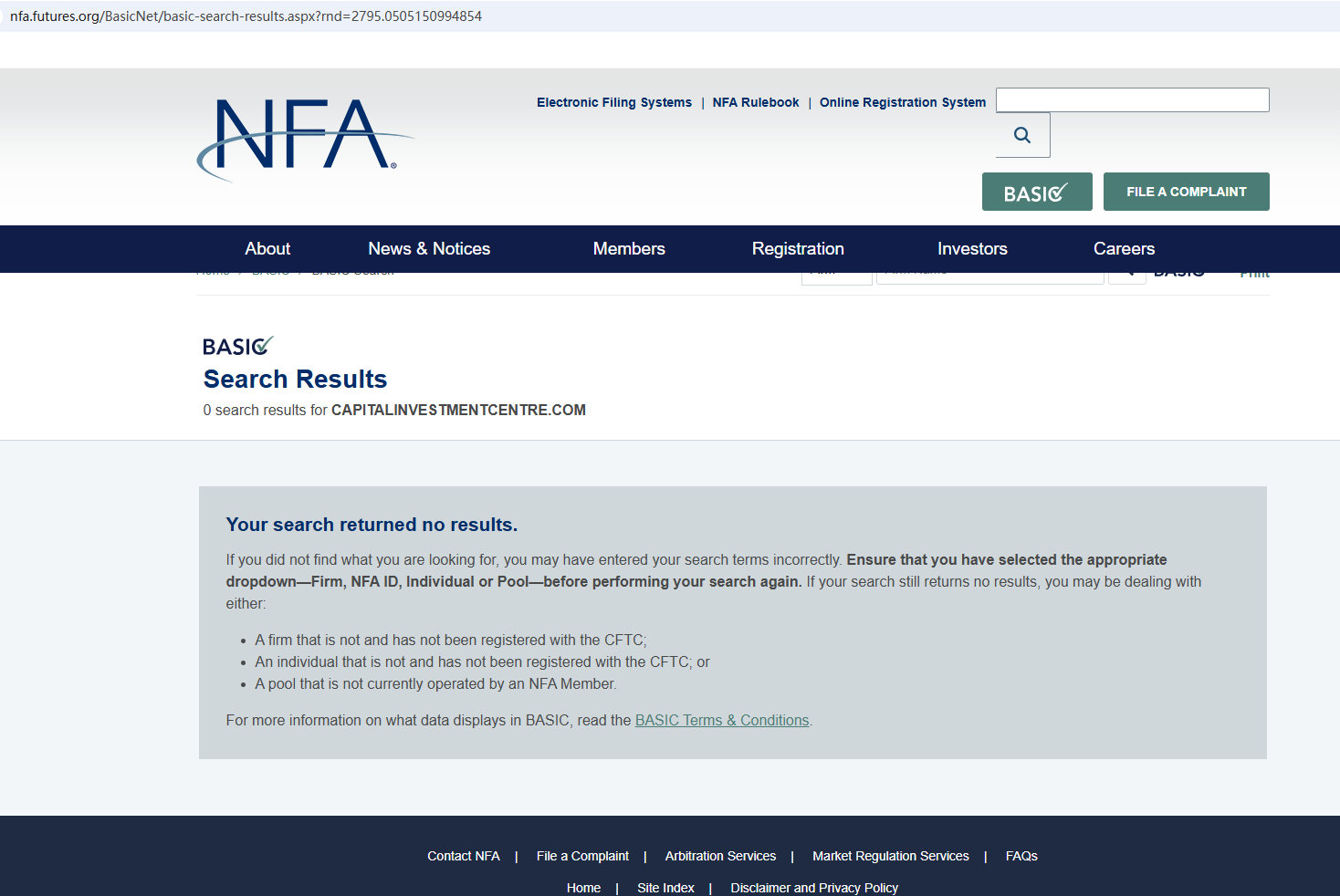 According to its website, it claims to be registered in both the US and the UK. However, upon investigation, no matching information was found with the Financial Conduct Authority (FCA) or the National Futures Association (NFA). Clearly, what it claims on its website is not true. In addition, the Cyprus Securities and Exchange Commission (CySEC) issued a warning against CapitalInvestmentCentre.com, believing this company might be providing financial services or products without authorisation.