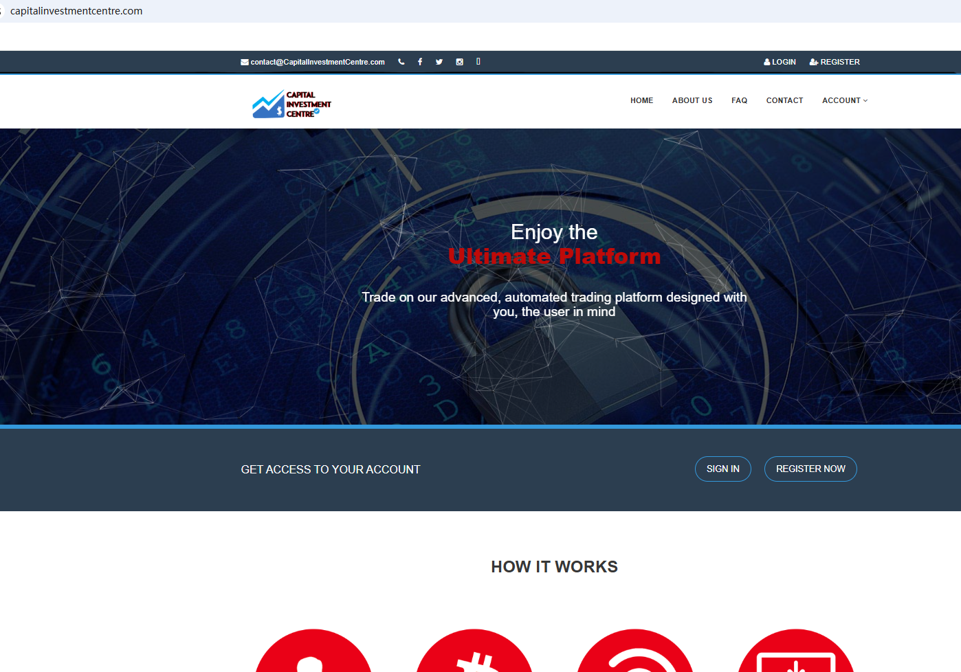 In essence, CapitalInvestmentCentre.com is not regulated by any governing body. Entrusting it with investors' funds is highly risky, as there are no legal protections in place to safeguard the funds. CapitalInvestmentCentre.com appears to be a scam.