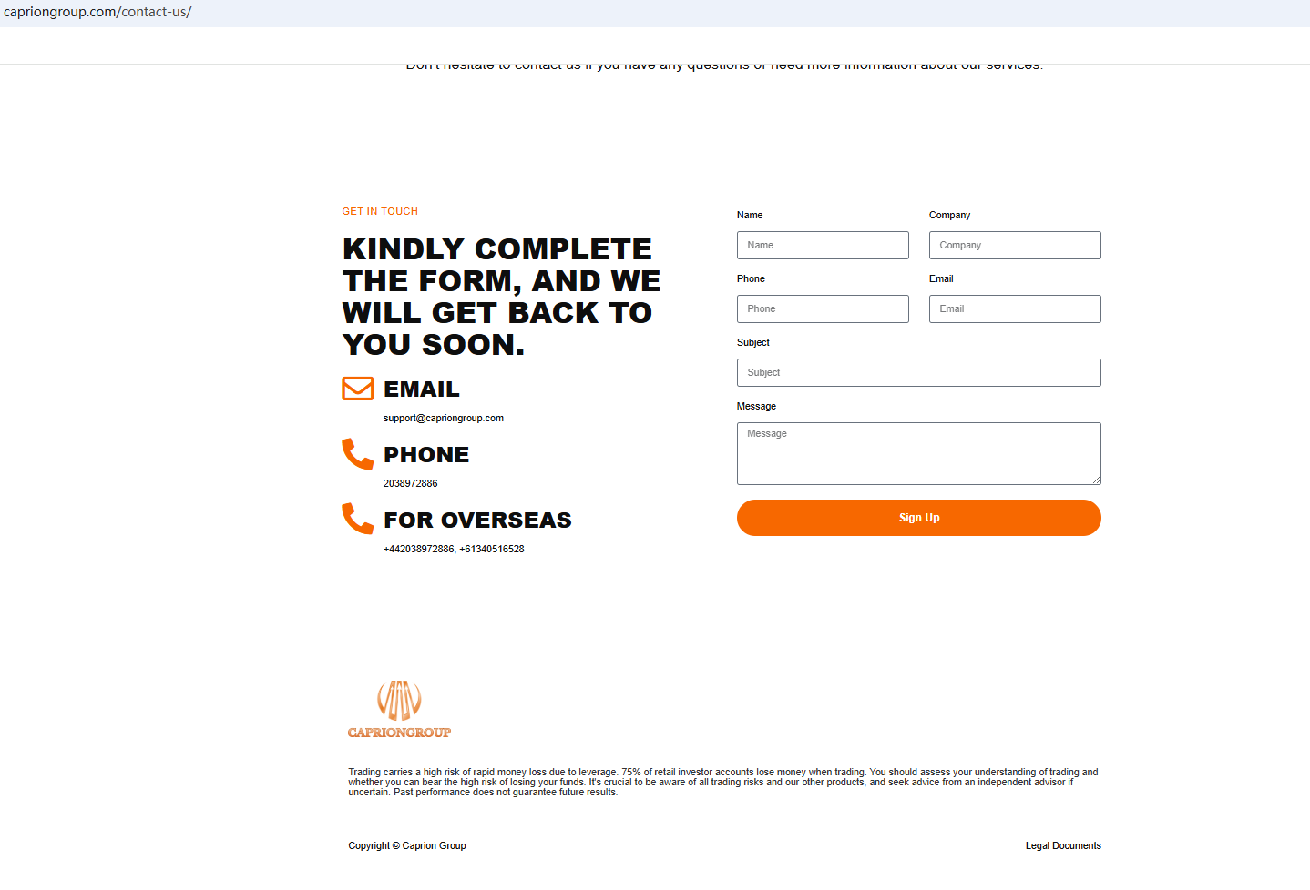 In essence, CaprionGroup is not regulated by any governing body. Entrusting it with investors' funds is highly risky, as there are no legal protections in place to safeguard the funds. CaprionGroup appears to be a scam.