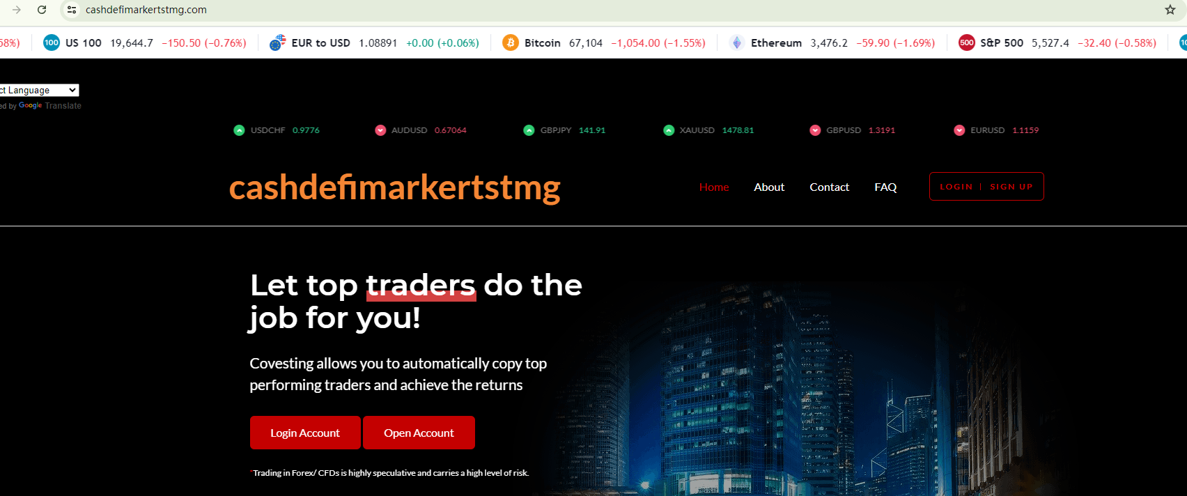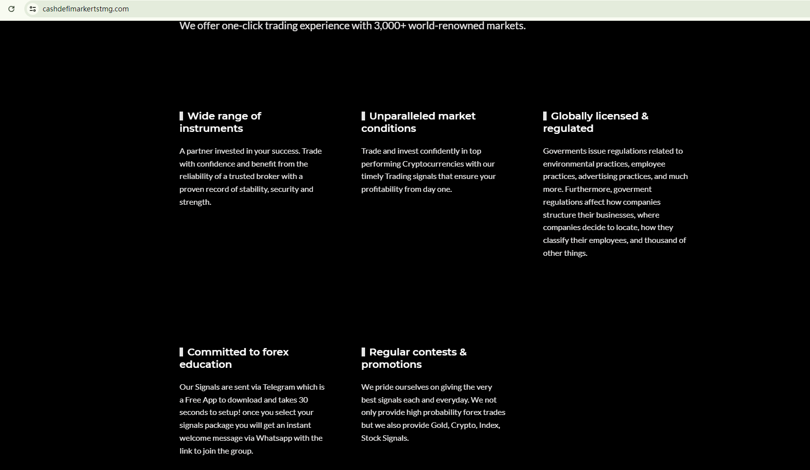 The Cashdefimarkertstmg website mirrors the content and graphics of brokers previously flagged as fraudulent by BrokersView, which is a significant red flag. These sites often begin with phrases like "Let top traders do the job for you…" and promise unrealistically high profits while minimizing the associated risks. They claim to be globally licensed without any valid foundation or justification. The UK's Financial Conduct Authority (FCA) has issued a warning against this purported British entity for lacking the necessary authorization.