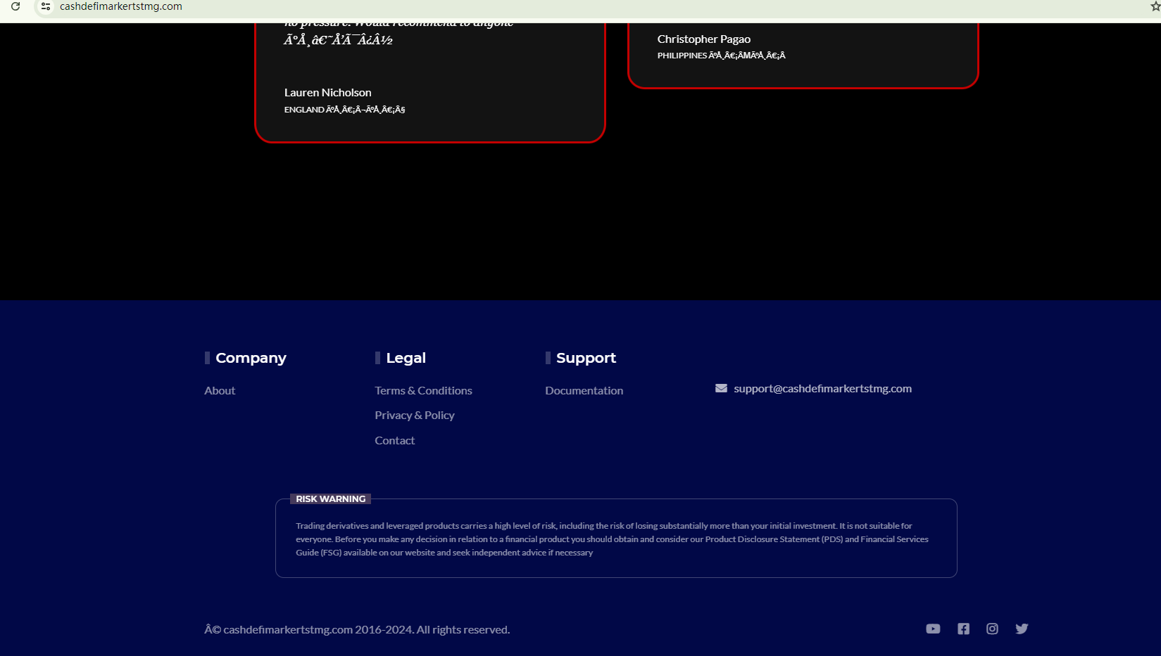 On July 18, 2024, the Financial Conduct Authority (FCA) issued a warning against Cashdefimarkertstmg, believing this company might be providing financial services or products without proper authorization in the UK. https://www.fca.org.uk/news/warnings/cashdefimarkertstmg-cashdefimarkertstmgcom