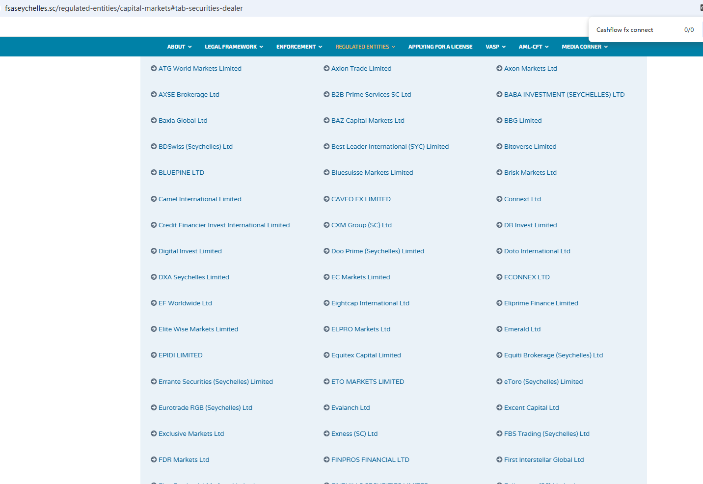 According to its website, it claims to be a reliable company and displays regulatory information on its website, but a search revealed no matching information with the Seychelles Financial Services Authority (Seychelles FSA). In addition, the National Securities Market Commission (CNMV) issued a warning against Cashflow fx connect, believing this company might be providing financial services or products without proper authorization.
