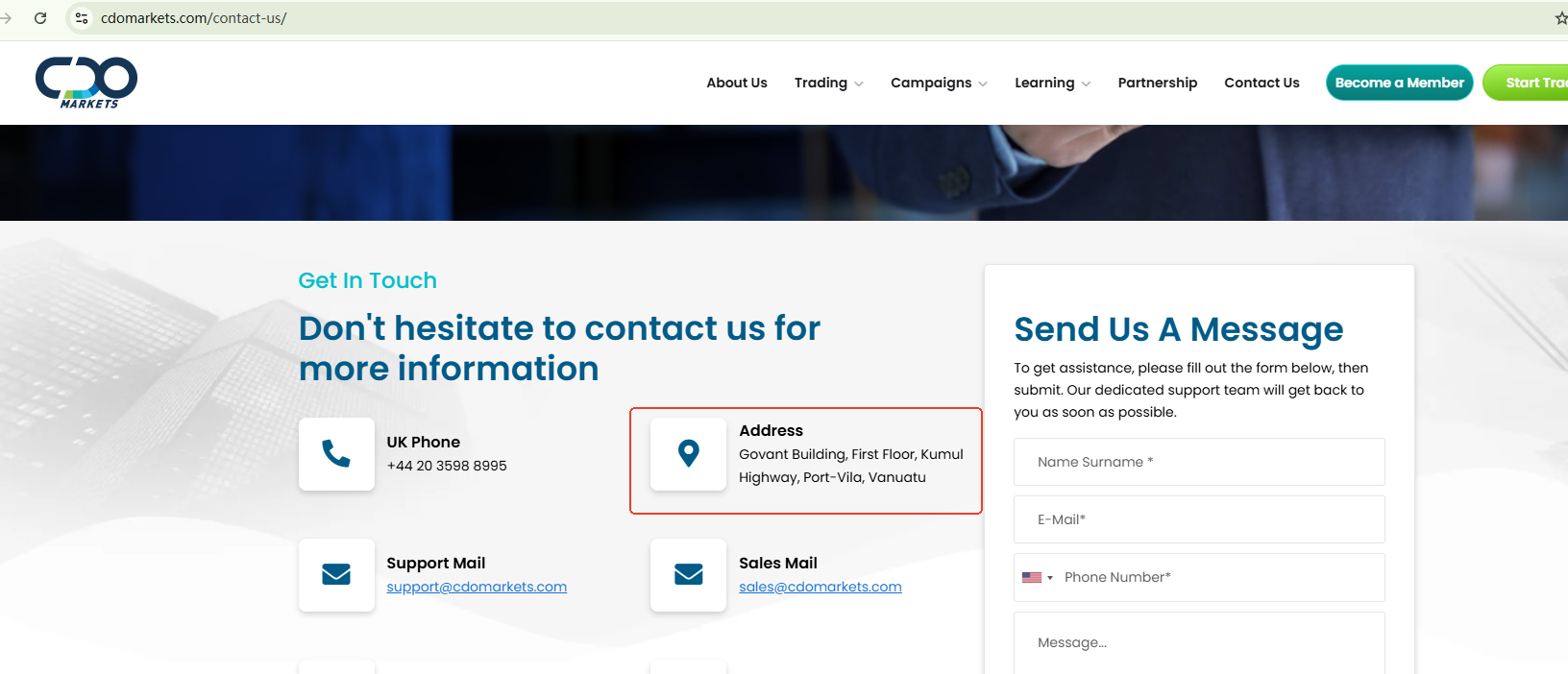 Secondly, the office address listed on CDO Markets is not a real office location. Instead, it appears to be a shared registration address used by multiple companies. It is common for businesses, especially in offshore financial centers, to use such addresses for registration purposes. This lack of transparency regarding CDO Markets' company information is concerning.