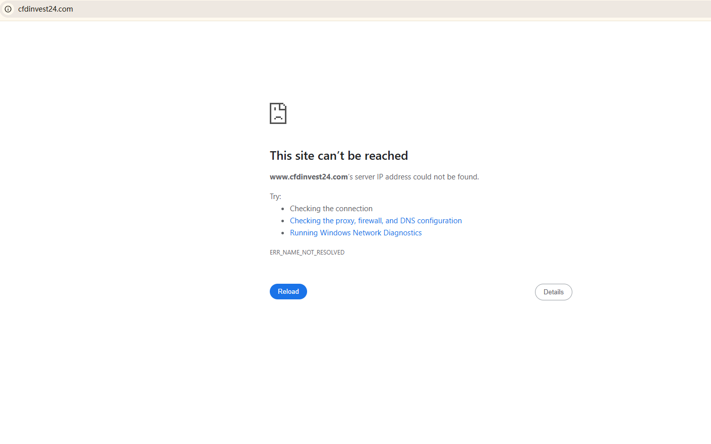 BrokersView found that the domain "https://www.cfdinvest24.com/" is currently inaccessible. This is widely regarded as a significant red flag, as the suspension of a broker's website often points to underlying regulatory or operational issues.