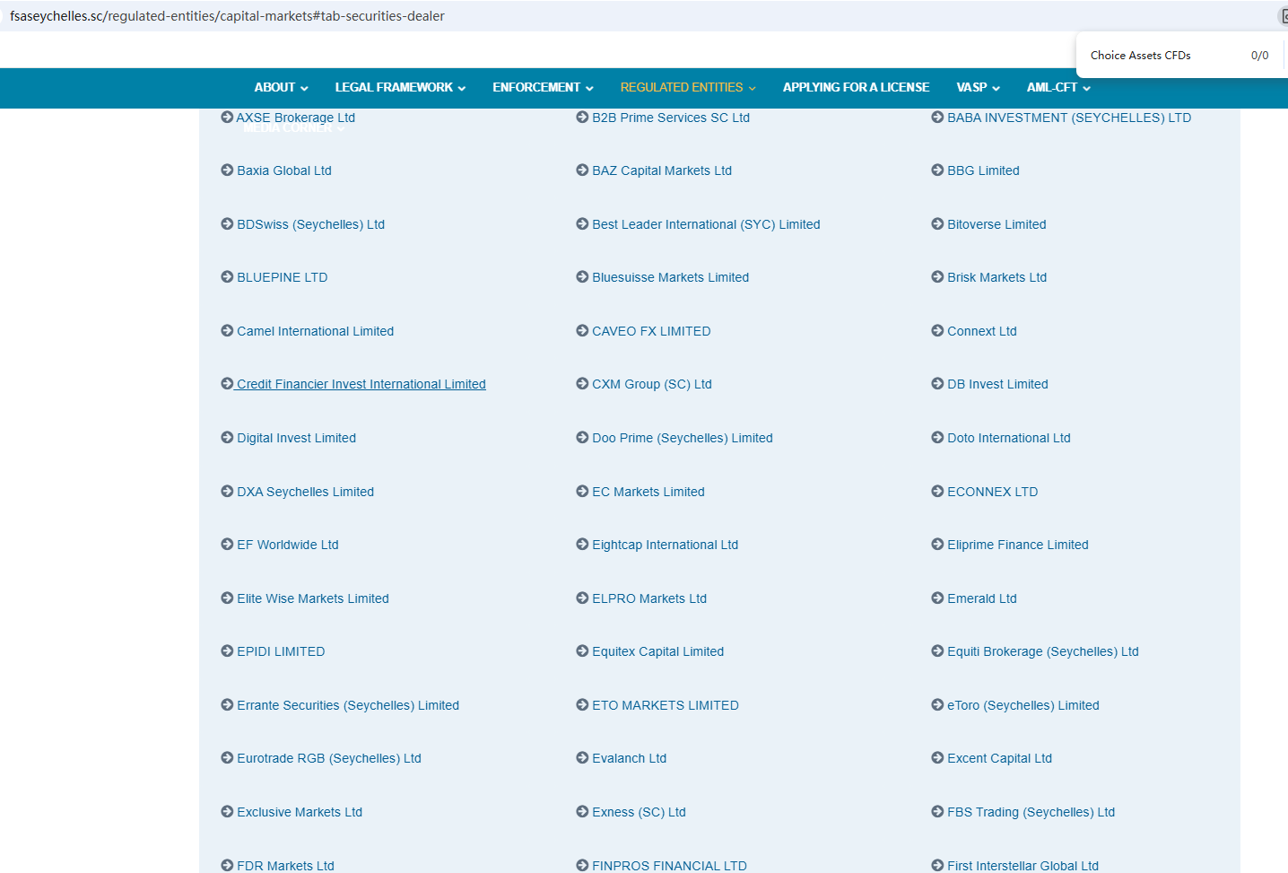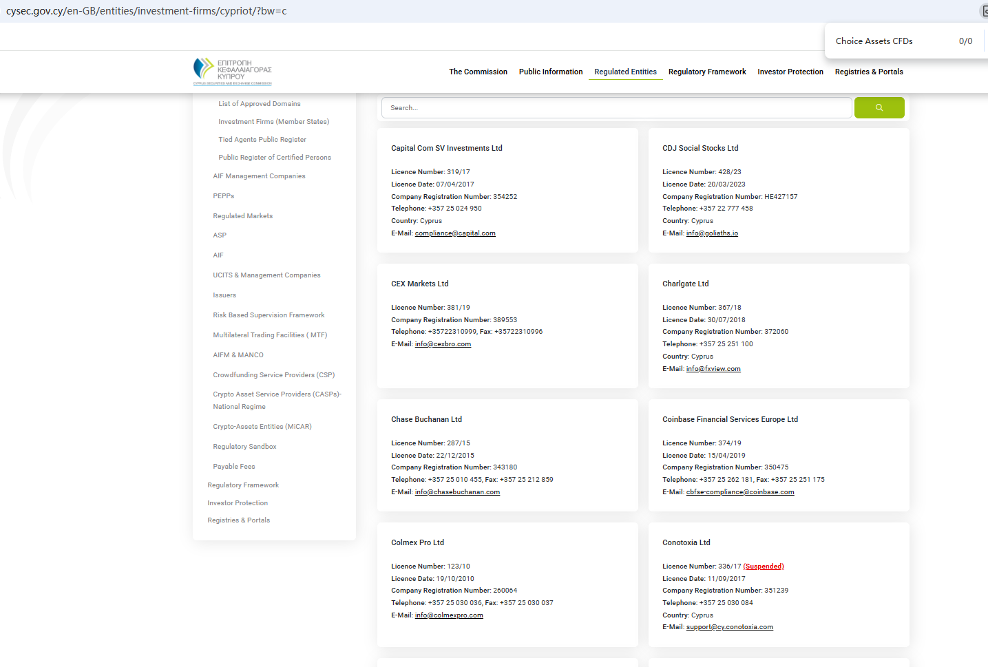 According to its website, it claims to be a reliable company, located in the United States and registered in both the Seychelles and Cyprus. However, no matching information was found with the Seychelles Financial Services Authority (Seychelles FSA) or the Cyprus Securities and Exchange Commission (CySEC). More notably, the Financial Conduct Authority (FCA) issued a warning regarding Choice Assets CFDs, suspecting that this company may be offering financial services or products without the necessary authorization.