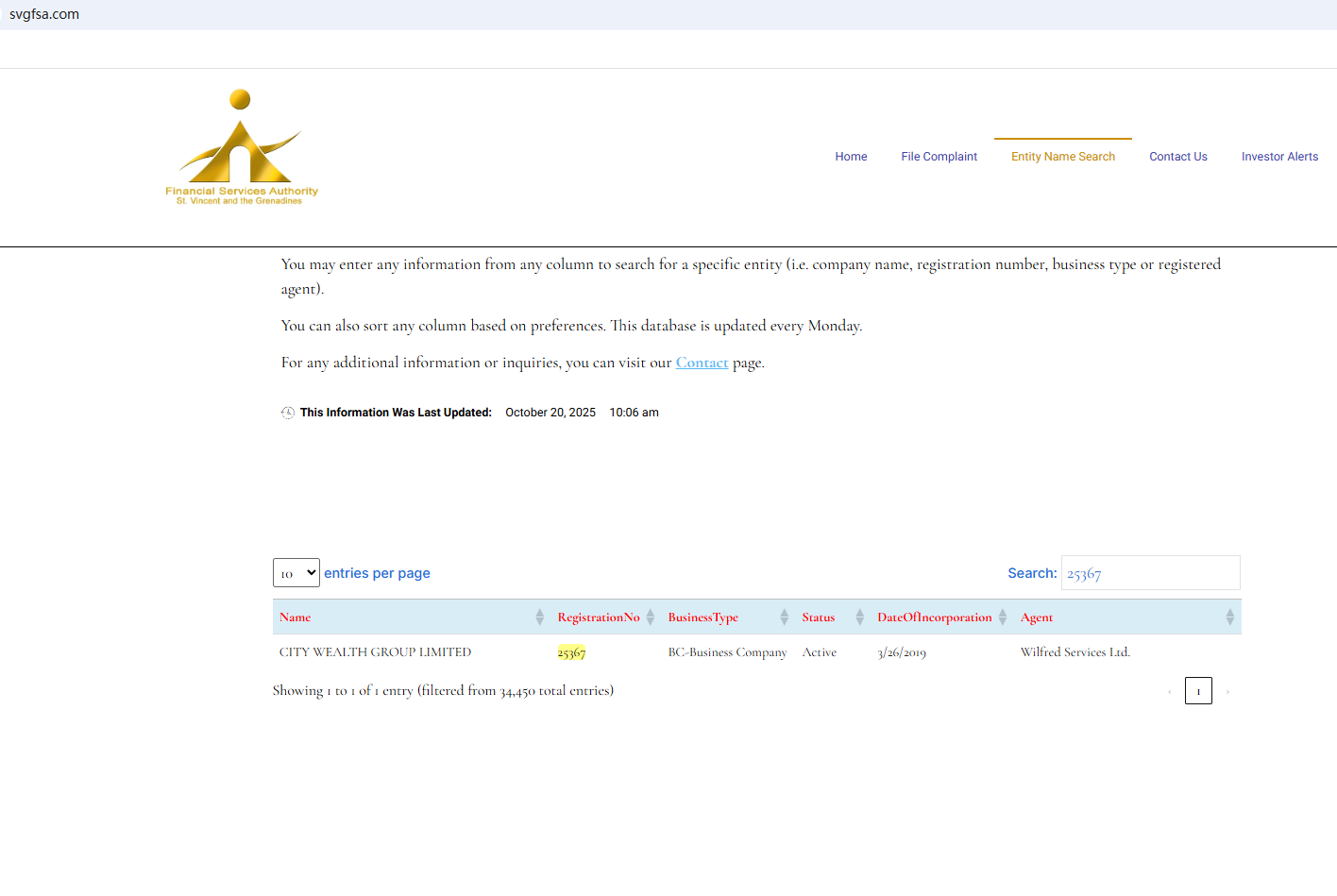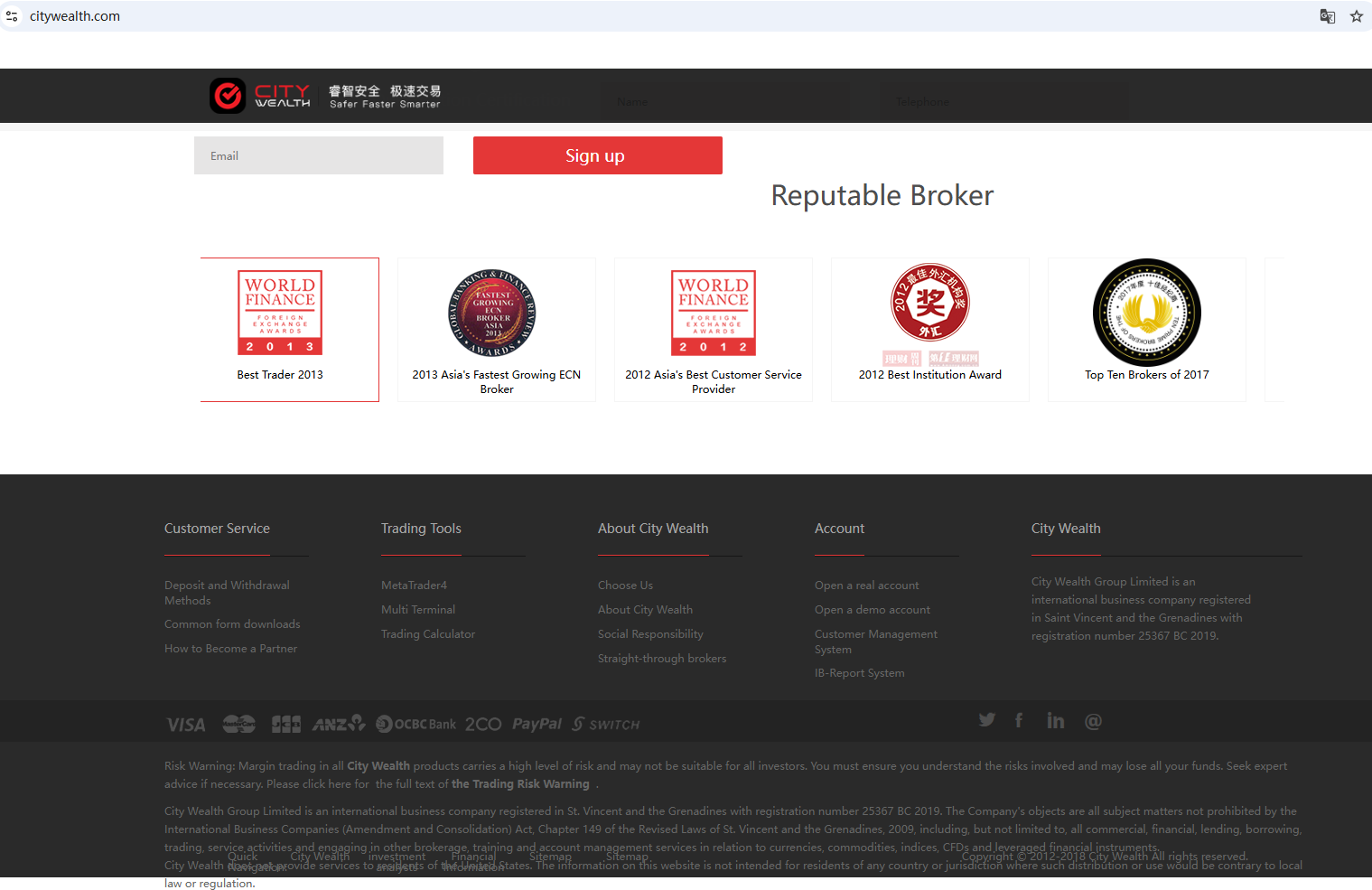 CITYWEALTH claims to be registered in St. Vincent. While this registration remains valid, the St. Vincent and the Grenadines Financial Services Authority (SVG FSA) lacks regulatory authority and does not constitute a valid forex license. Furthermore, CITYWEALTH appears to have made no mention of any stronger regulatory oversight, raising serious concerns about potential fraud. Investors are advised to be vigilant and steer clear of this platform.
