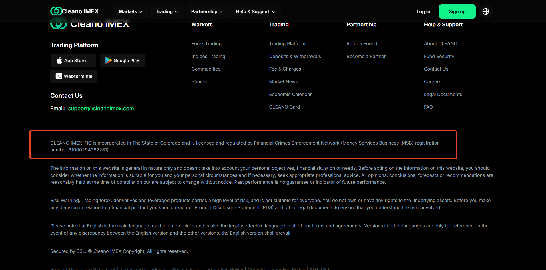 CLEANO appears to be an unregulated entity and may pose significant risks to investors; although the company claims to be trustworthy and cites a Money Services Business (MSB) certificate from the Financial Crimes Enforcement Network (FinCEN), for which a matching licensed entity exists, it is important to note that this registration does not authorize or regulate forex trading activities, as FinCEN does not oversee such operations. Furthermore, CLEANO does not hold any license from recognized financial regulatory authorities. Given these concerns, CLEANO appears to be a fraudulent operation.