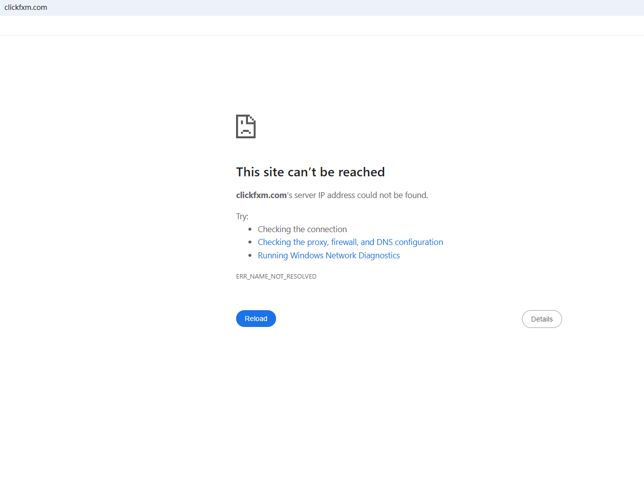 BrokersView found that the domain "https://clickfxm.com/" is currently inaccessible. This is widely regarded as a significant red flag, as the suspension of a broker's website often points to underlying regulatory or operational issues.