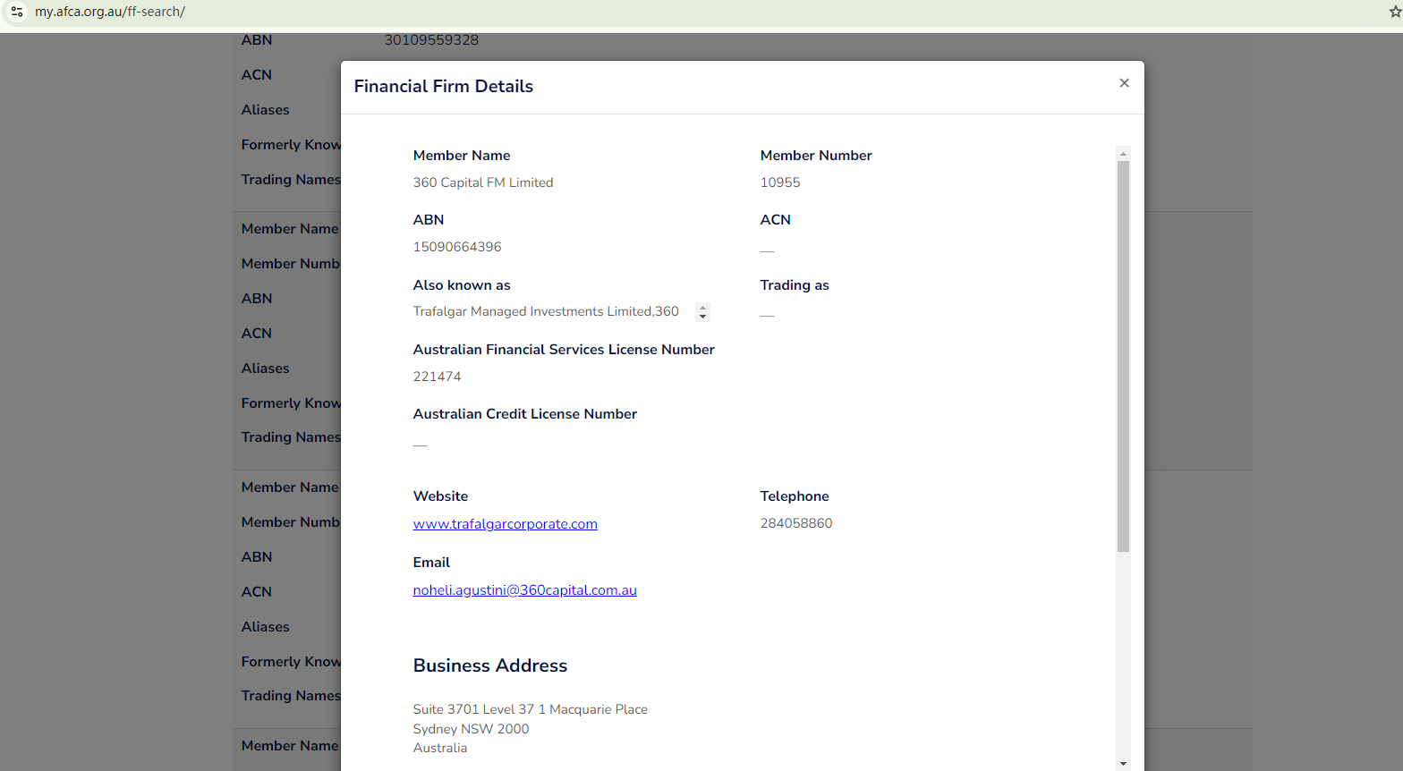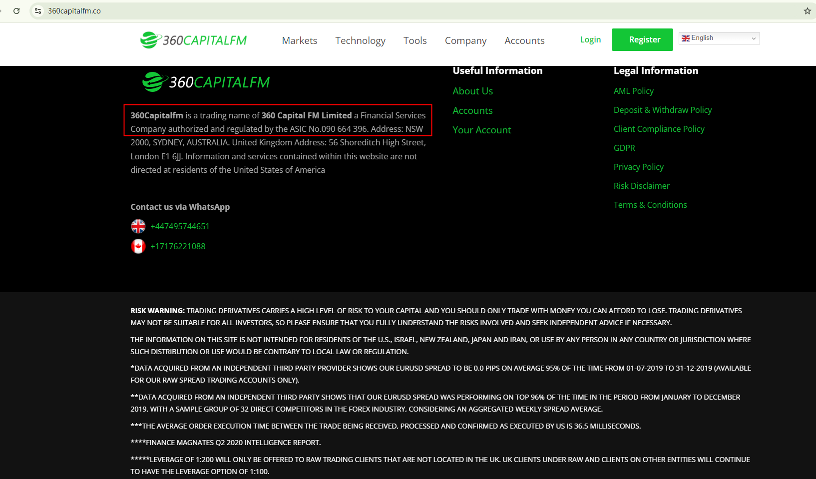 The website 360capitalfm.co claims to be licensed by the Australian Securities and Investments Commission (ASIC). However, the financial authority has issued a warning about the website, noting that 360capitalfm.co is an imposter, misleading investors into believing that they are working with an ASIC-licensed entity.