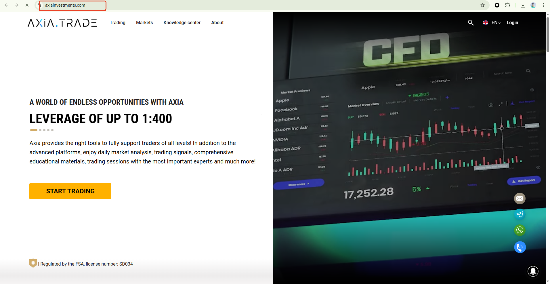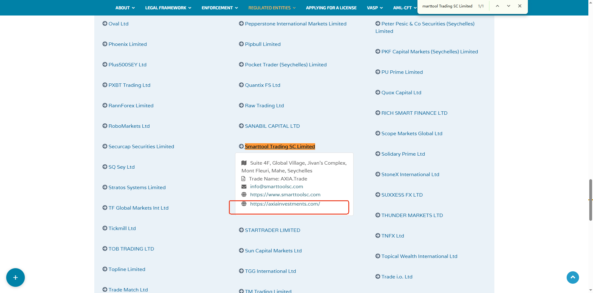 The logo and information it presents are identical to those of Axia Investments. This platform claims to be operated by Smarttool Trading SC Limited, authorized and regulated by the Financial Services Authority (FSA) of Seychelles under license number SD034.