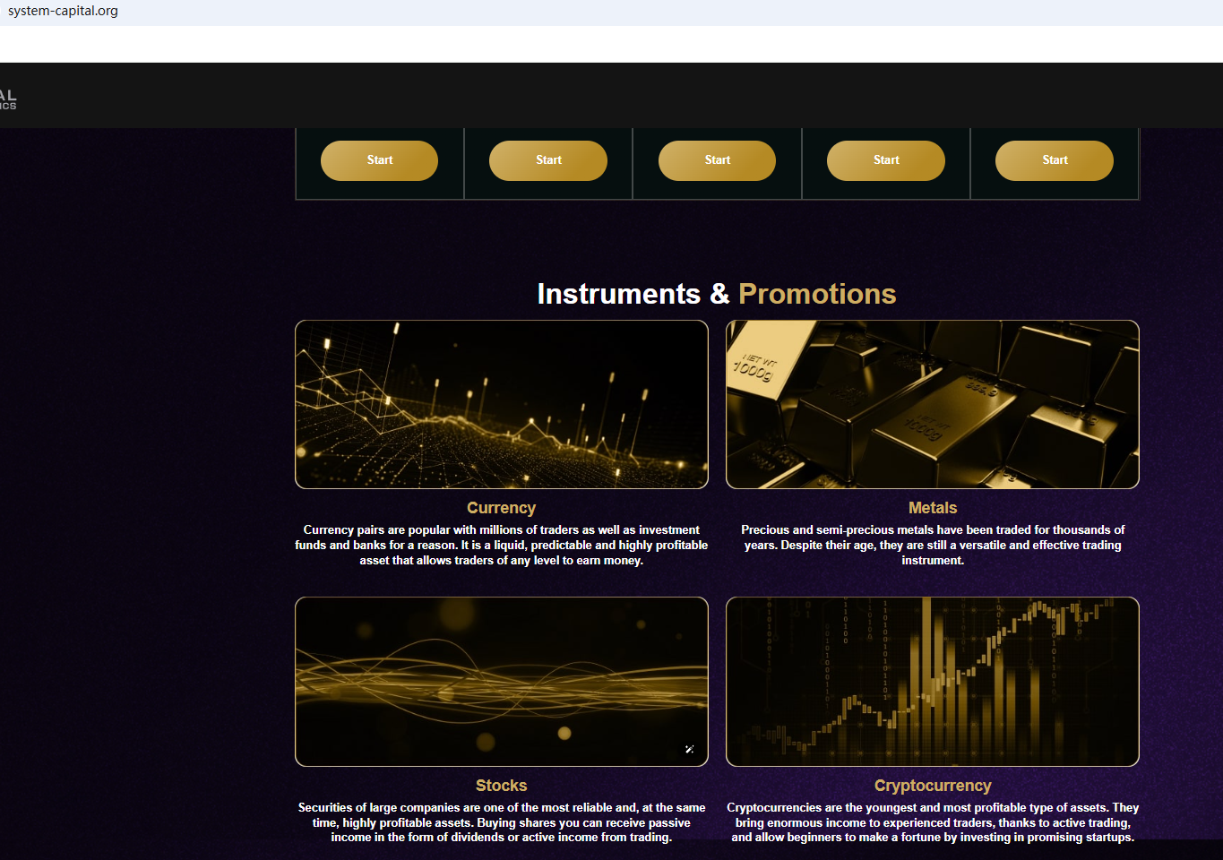 According to its website, it claims that the company was established in the UK in 2006 and registered with Companies House (CH). Upon investigation, we found that its domain name was only created in 2025. Furthermore, CH only represents company registration and does not have the authority to regulate forex. To obtain the right to conduct forex in the UK, one must be authorised by the Financial Conduct Authority (FCA). Ridiculously, we found that system-capital.org does not match the websites of FCA-registered brokers, clearly indicating that system-capital.org stole information from compliant brokers to impersonate its legitimacy. Notably, the Federal Financial Supervisory Authority (BaFin) issued a warning against system-capital.org for the lack of the required authorization.