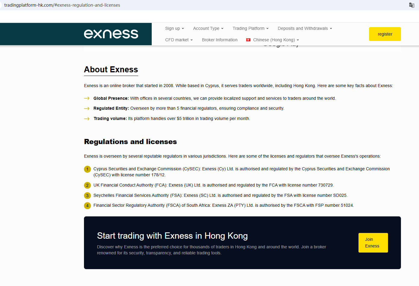 According to its website, it states that it is regulated by the Cyprus Securities and Exchange Commission (CySEC), Financial Conduct Authority (FCA), Seychelles Financial Services Authority (Seychelles FSA), and Financial Sector Conduct Authority (FSCA). Upon investigation, we found that tradingplatform-hk.com does not align with these documented company websites. There is evidence that the regulatory information of compliant companies has been used, as well as the name of a compliant company, to create a similar impression. This raises concerns about the trustworthiness of the entity, and investors are advised to exercise caution.