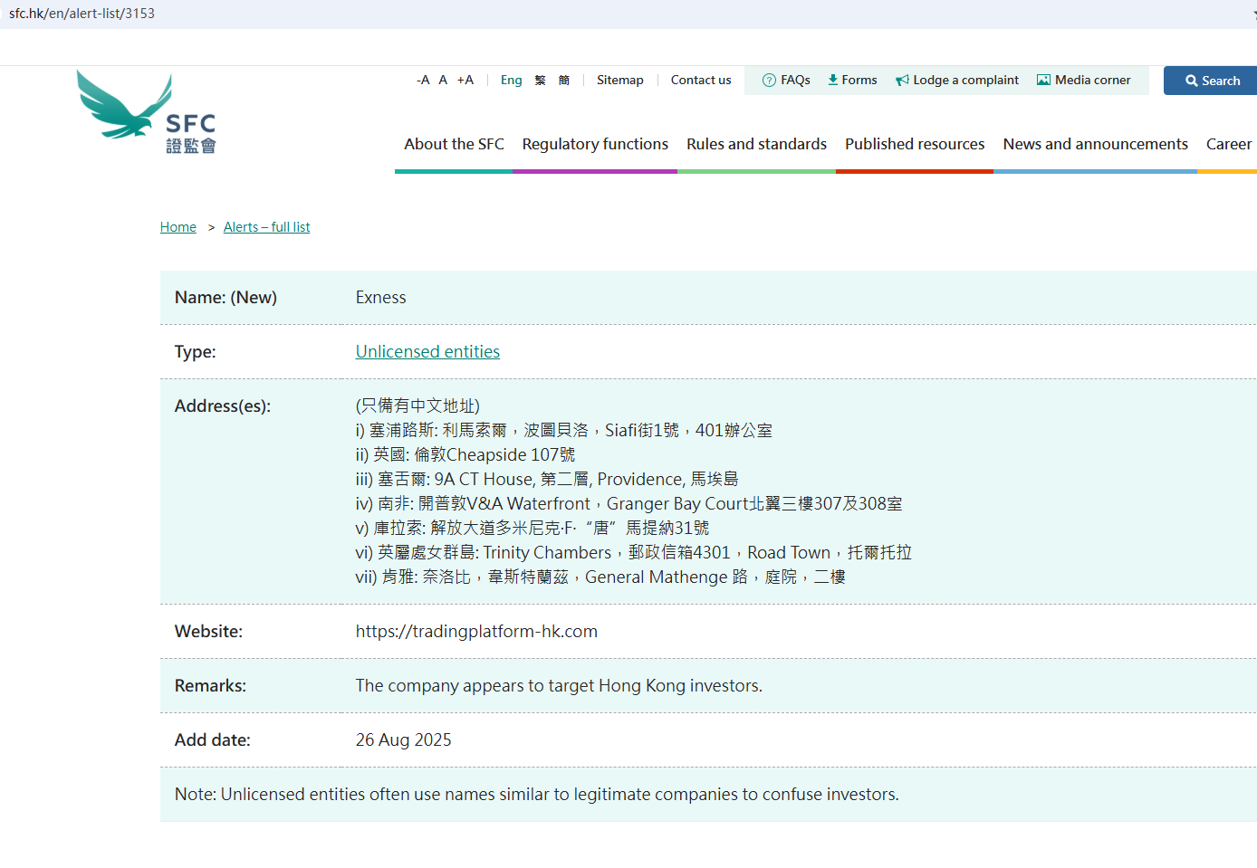 On Aug 26, 2025, the Securities And Futures Commission(SFC) issued a warning against tradingplatform-hk.com, believing this company might be providing financial services or products without proper authorization in the HK. https://www.sfc.hk/en/alert-list/3153