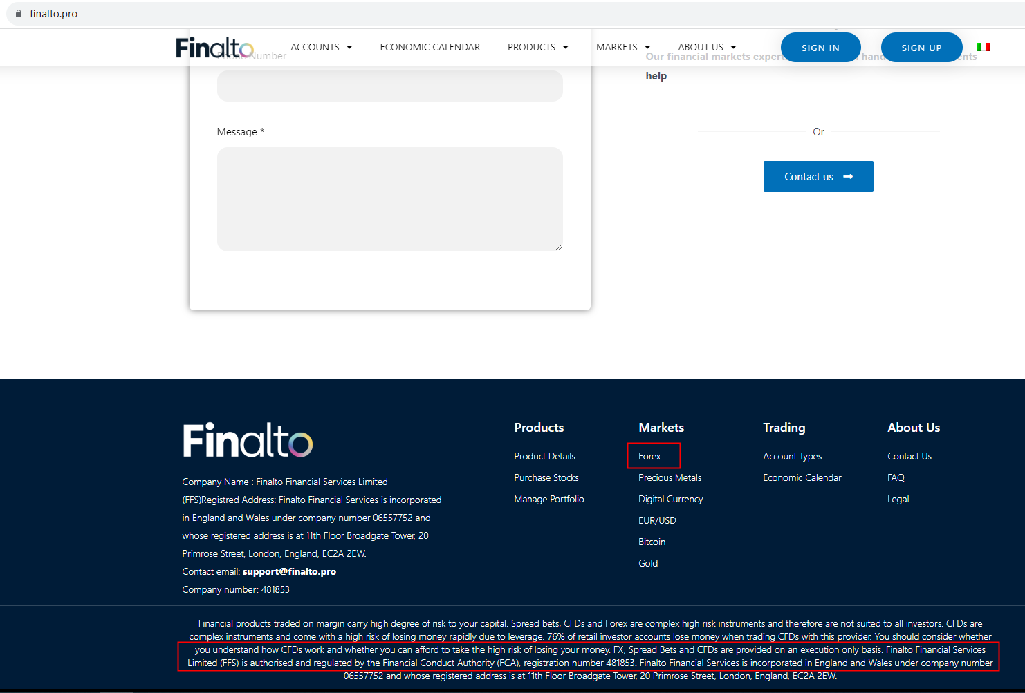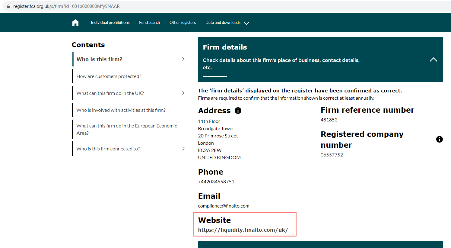Clone Finalto Pro claims to be regulated by the Financial Conduct Authority (FCA), registration number 481853. We searched the FCA and found a result, but the website is different from Clone Finalto Pro. It is a red flag.