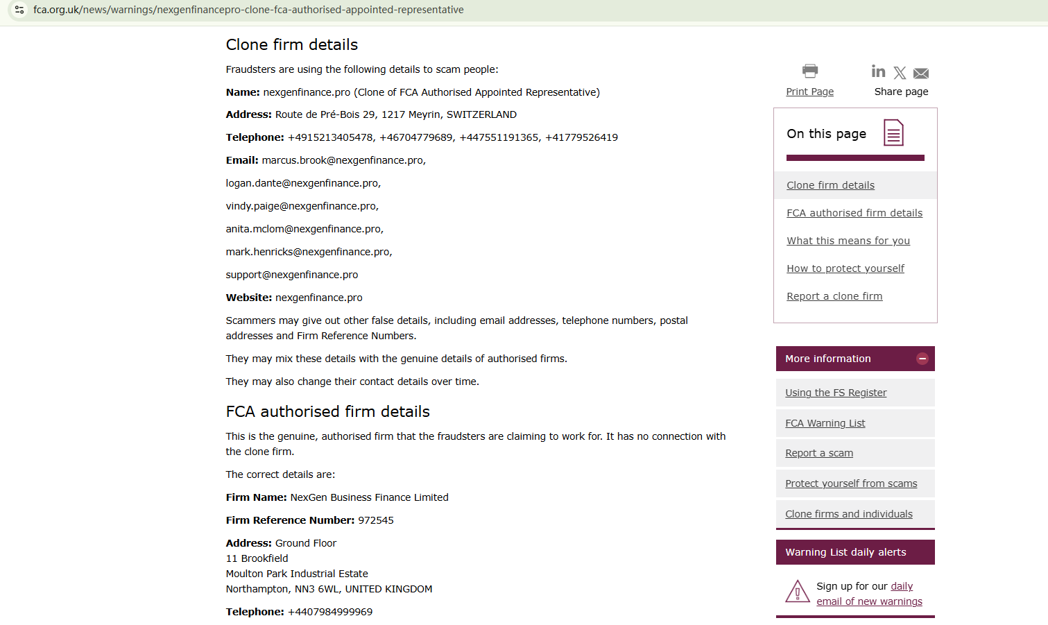 On January 29, 2025, the Financial Conduct Authority (FCA) issued a warning against nexgenfinance.pro, identifying it as a clone of an FCA-authorized firm. https://www.fca.org.uk/news/warnings/nexgenfinancepro-clone-fca-authorised-appointed-representative