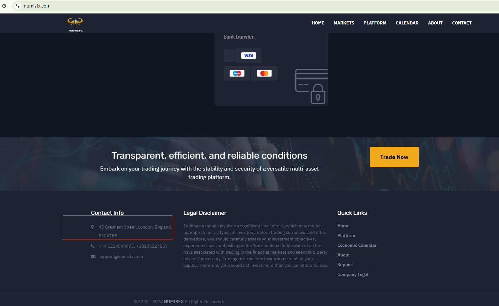 The site numisfx.com was just registered in August 2024. It displays an address to appear real in the footer, which is associated with Numis Securities Limited, a firm authorized by the Financial Conduct Authority (FCA). However, the FCA-authorized firm doesn't bear responsibility for the site numisfx.com. This is a case of identity fraud. Therefore, the FCA issued a warning, marking numisfx.com as a clone firm. The site numisfx.com is a scam.