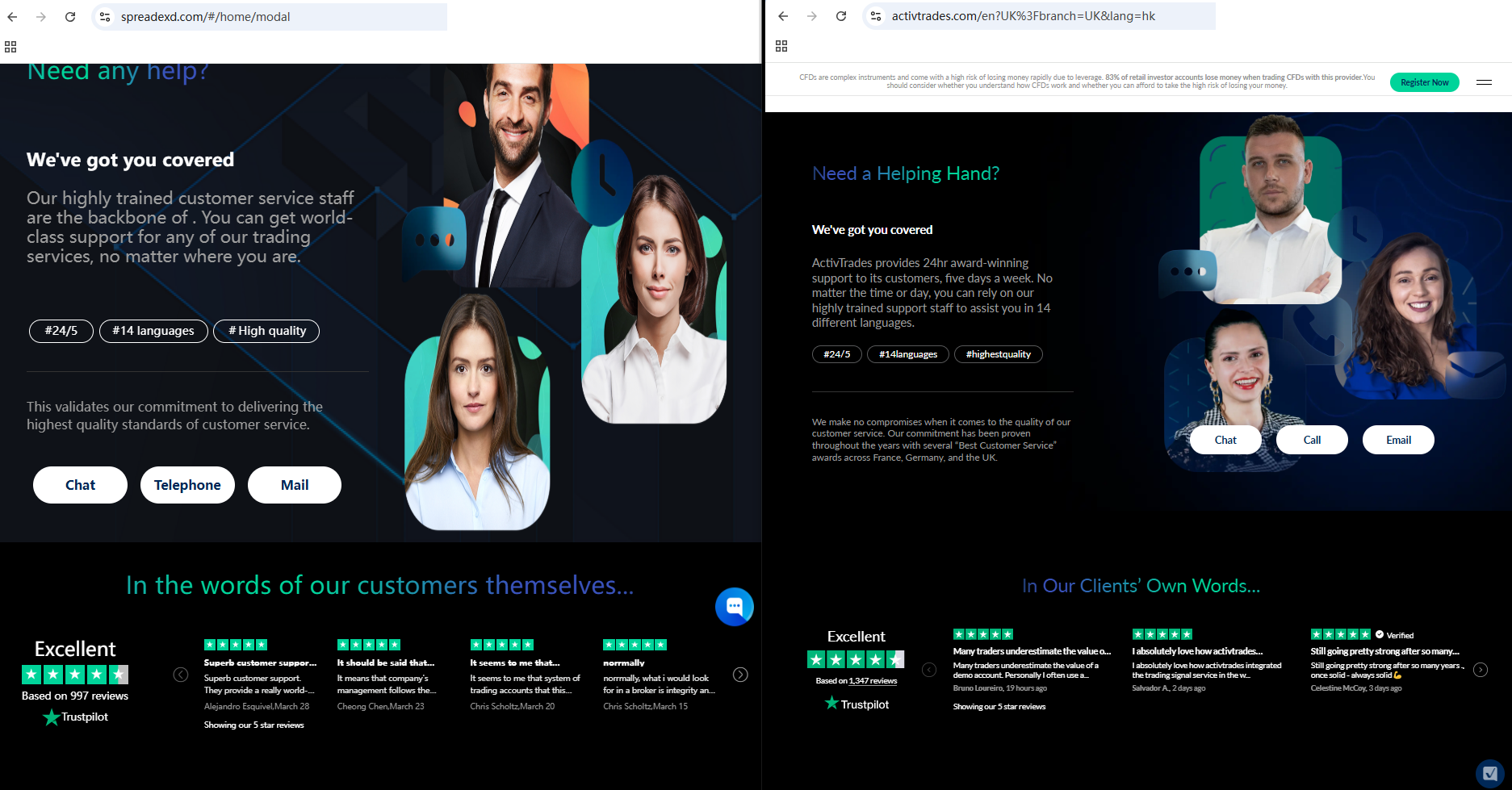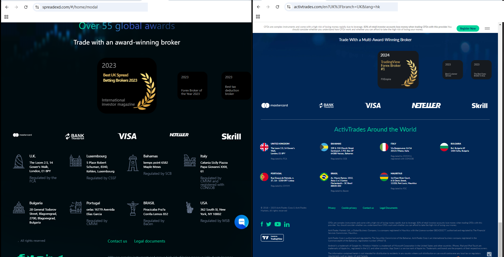 What is more noteworthy is that we compared the website pages of spreadexd.com and Activtrades and found great similarities. spreadexd.com imitated the content and graphic design of Activtrades, which means that the website abuses the information of legitimate brokers to appear real or create the feeling of any potential connection with the licensee. Either way, this is a clear indicator of a scam.