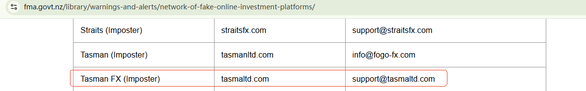 On February 17, 2025, the New Zealand Financial Markets Authority (NZ FMA) released a warning list, advising investors to stay vigilant about 96 suspicious investment websites including tasmaltd.com. https://www.fma.govt.nz/library/warnings-and-alerts/network-of-fake-online-investment-platforms/