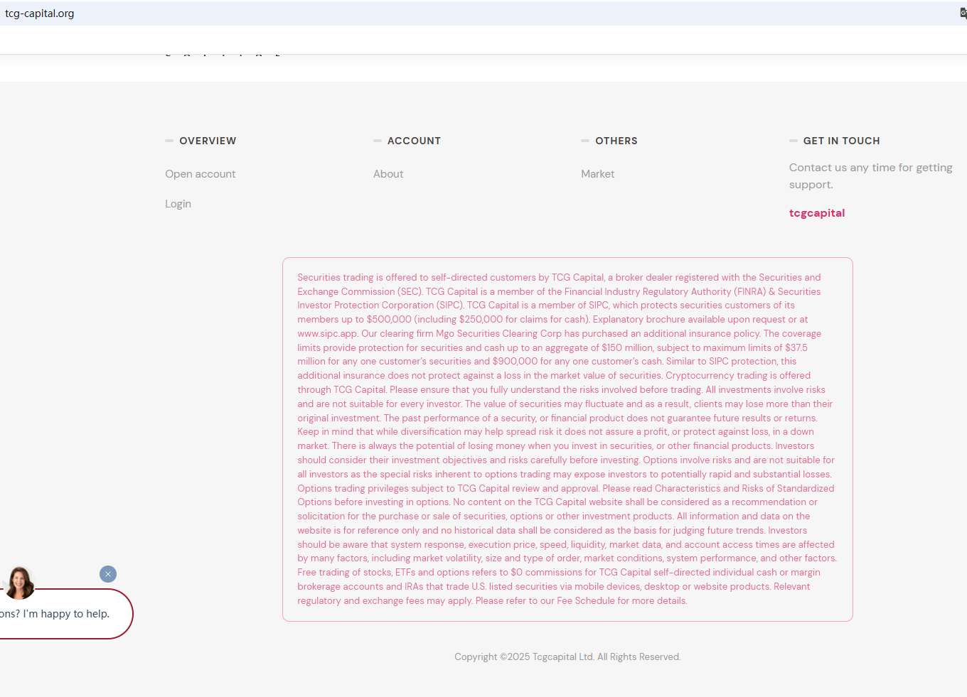 On May 8, 2025, the Finansinspektionen (FI) issued a warning against tcg-capital.org, suspecting that it is not a real company. https://www.fi.se/en/our-registers/investor-alerts/investor-alerts/2025/maj/tcgcapital-ltd-clone/