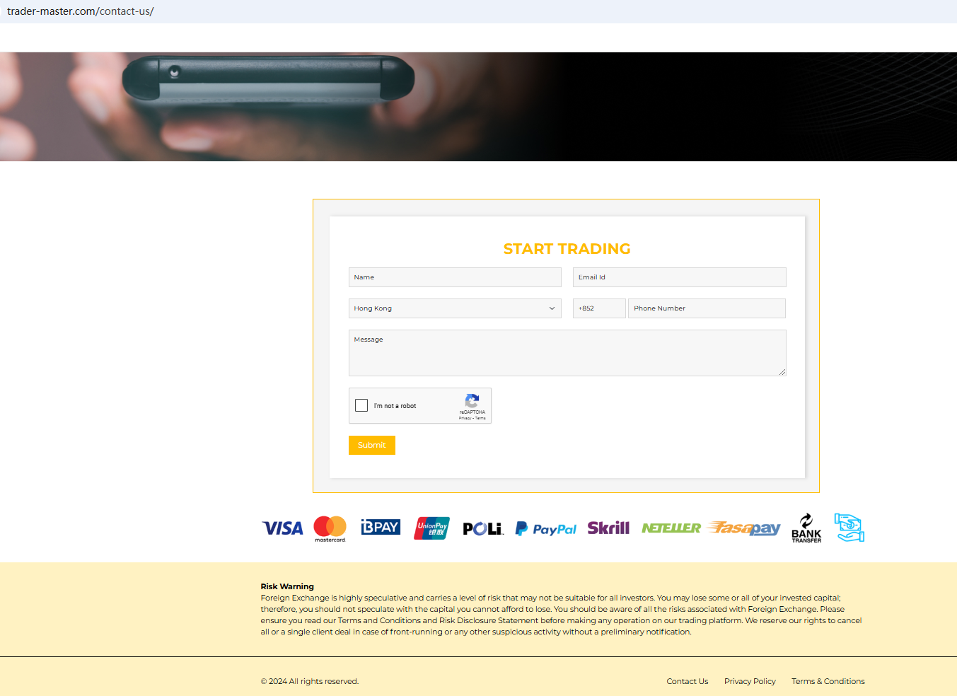 In essence, trader-master.com is not regulated by any governing body. Entrusting it with investors' funds is highly risky, as there are no legal protections in place to safeguard the funds. trader-master.com appears to be a scam.