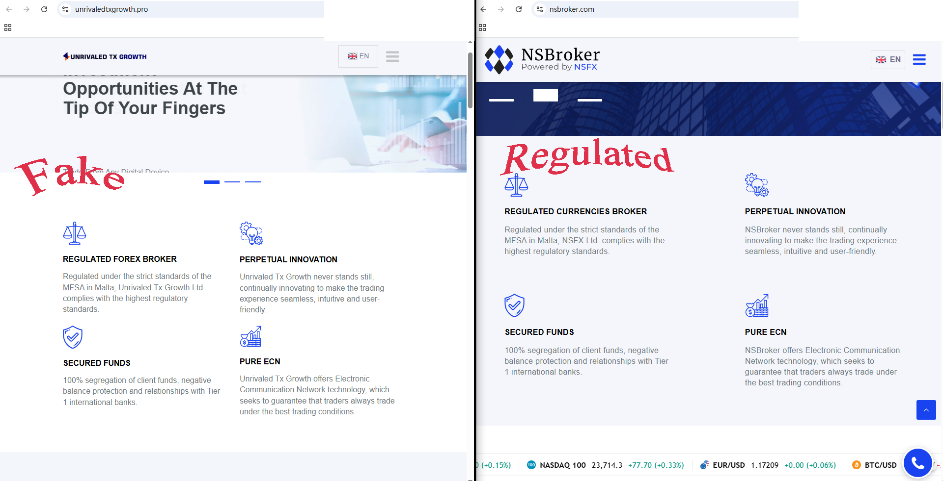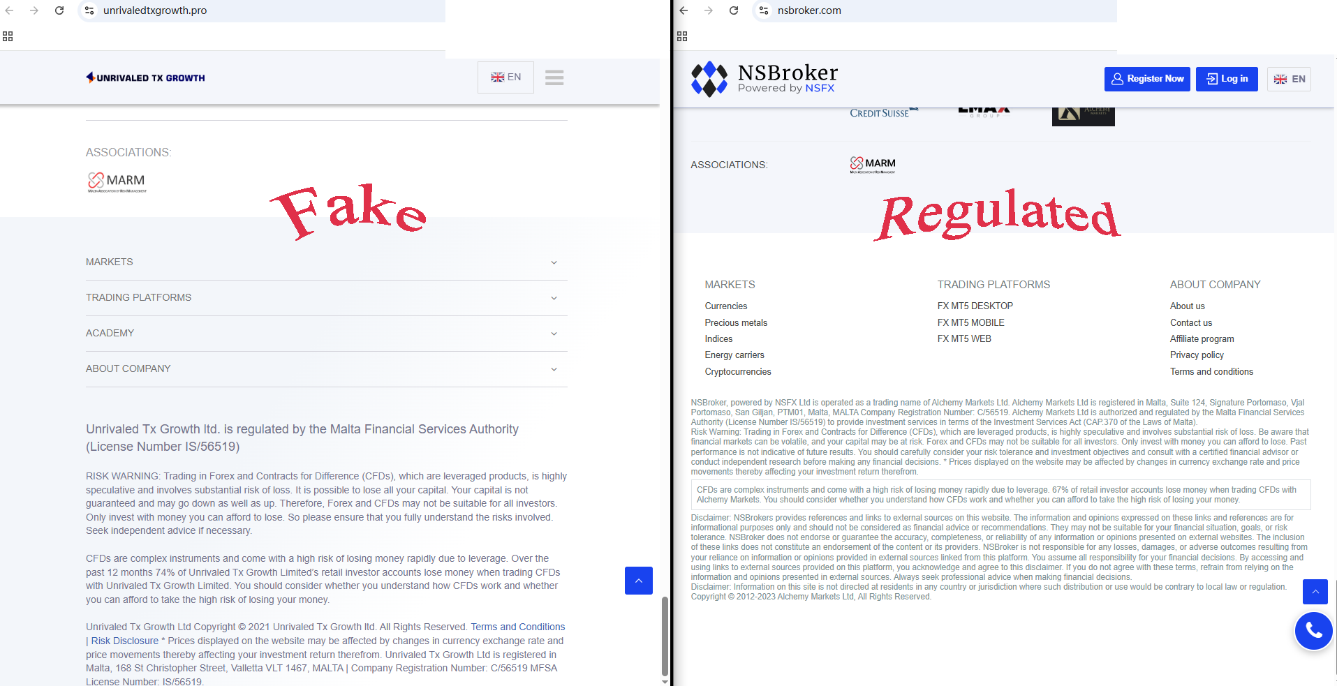 unrivaledtxgrowth.pro claims to be regulated by the Malta Financial Services Authority (MFSA). However, our investigation revealed that optimawxtrading.pro copies content and design from legitimate brokers such as NSBroker, and the MFSA has publicly warned about related unlicensed activities. This clear misuse of information is a strong indicator that unrivaledtxgrowth.pro is operating a scam.