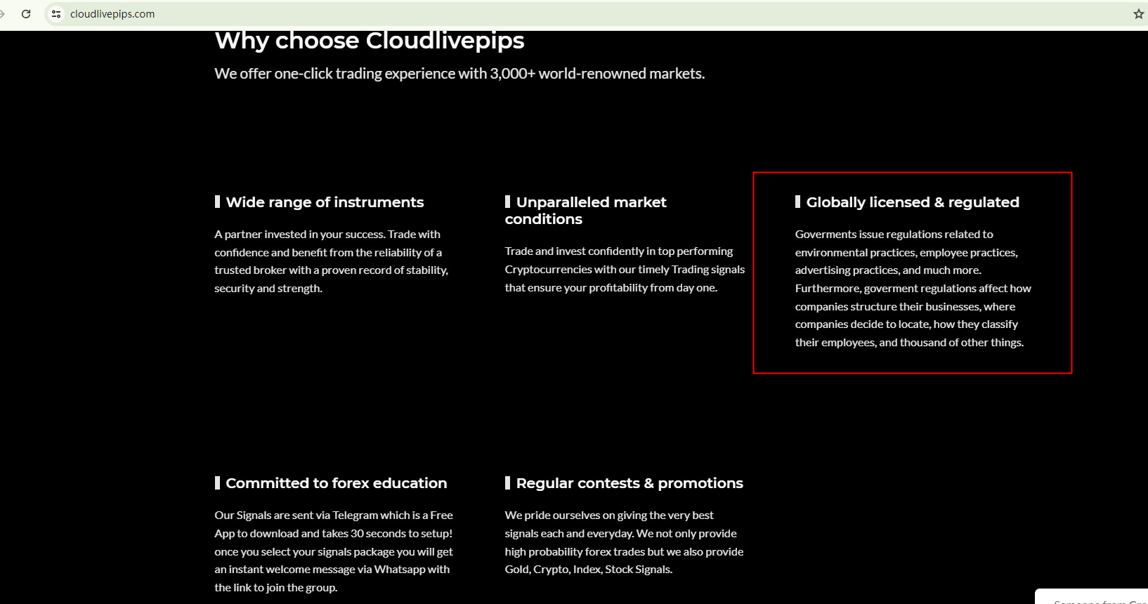 Unknown operators provide financial services through the website cloudlivepips.com but fail to provide any specific regulatory information to support their claim of being "globally regulated". This lack of transparency is a red flag.