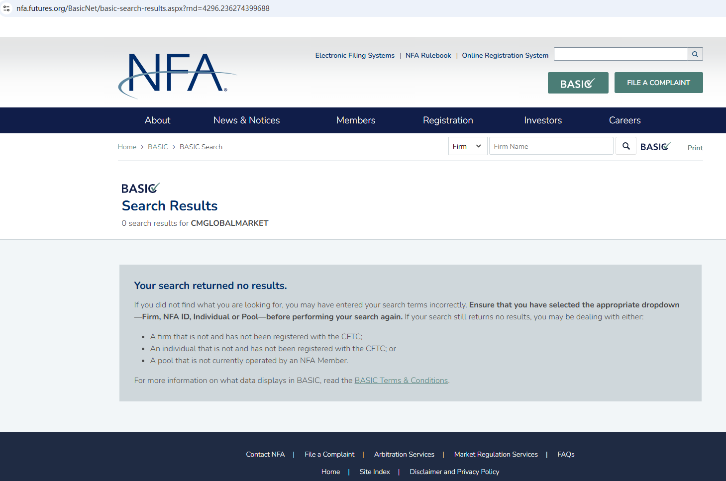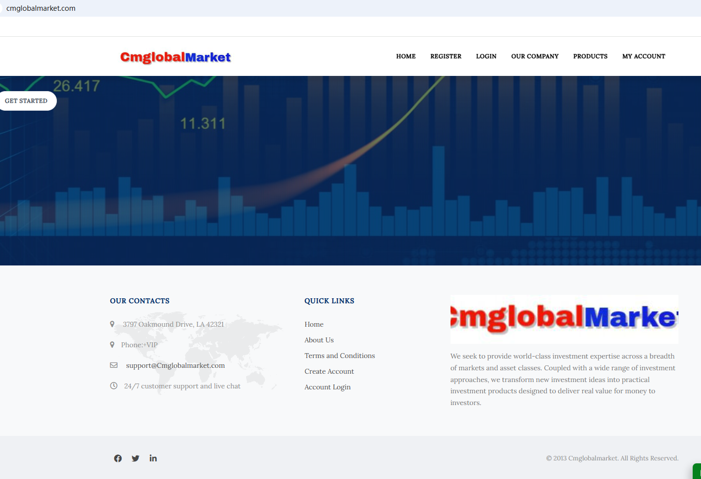 According to its website, it is located in the United States. Upon investigation, no matching information was found in the National Futures Association (NFA). In addition, the Financial Conduct Authority (FCA) issued a warning regarding Cmglobalmarket, suspecting that this company may be offering financial services or products without the necessary authorization.