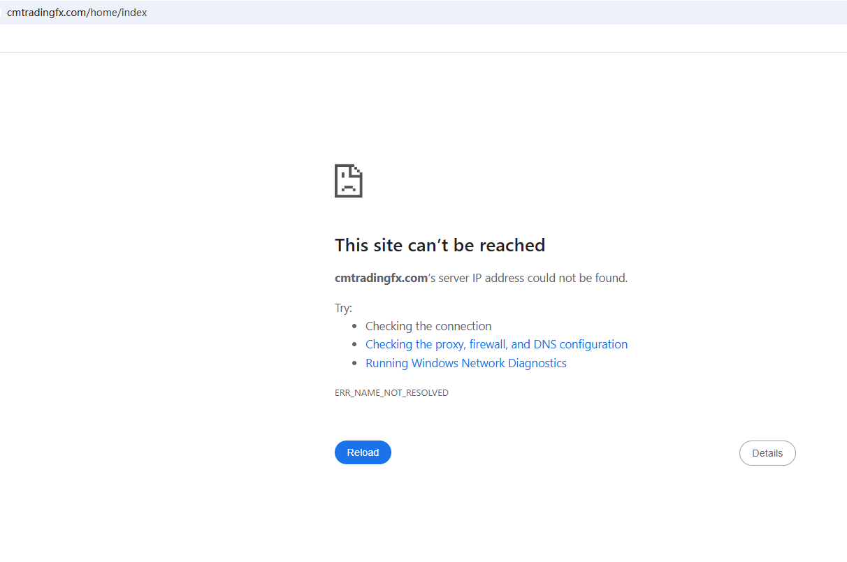 BrokersView found that the domain "https://cmtradingfx.com/home/index" is currently inaccessible. This is widely regarded as a significant red flag, as the suspension of a broker's website often points to underlying regulatory or operational issues.