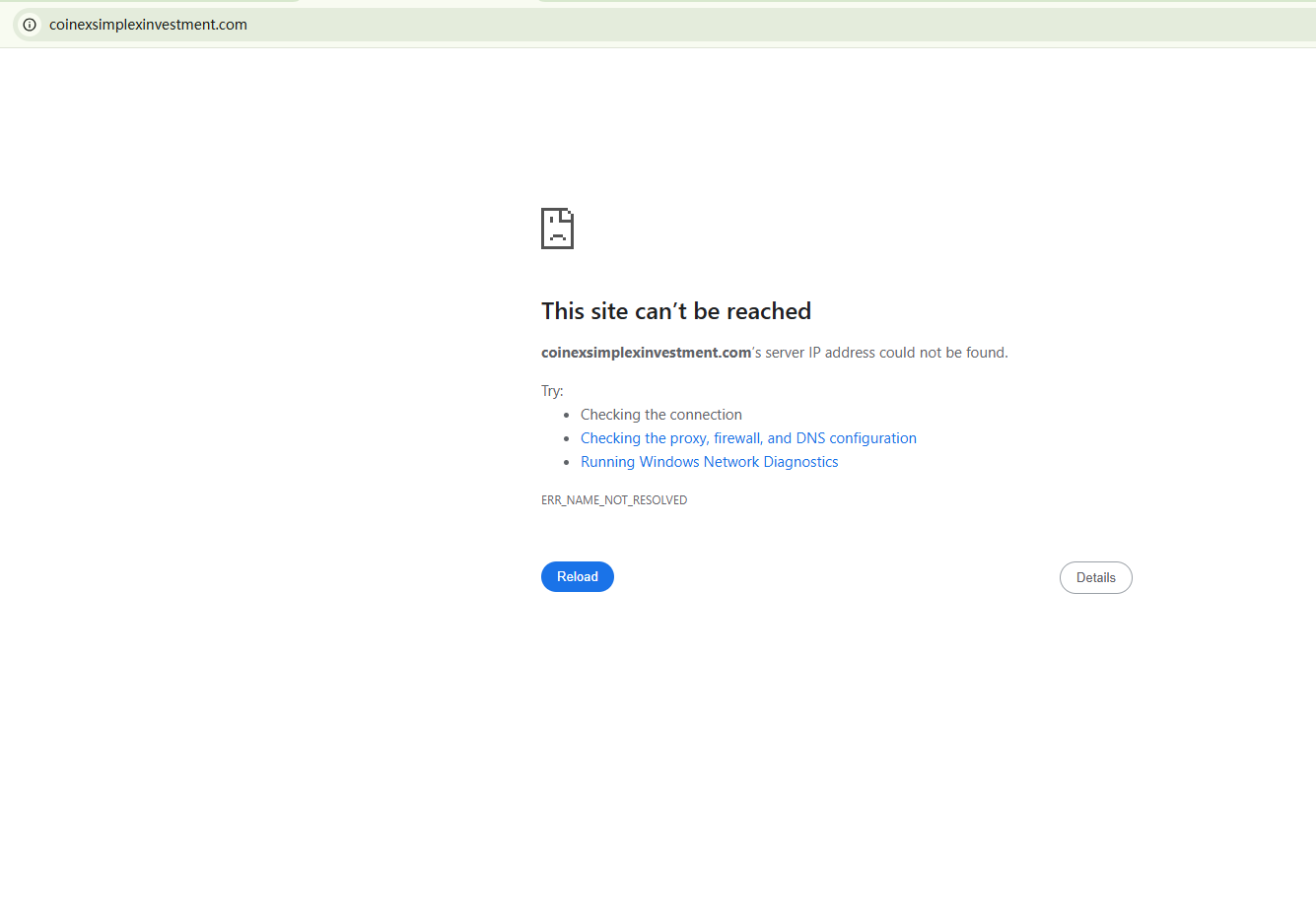 BrokersView found that the domain "https://coinexsimplexinvestment.com/" is currently inaccessible. This is widely regarded as a significant red flag, as the suspension of a broker's website often points to underlying regulatory or operational issues.