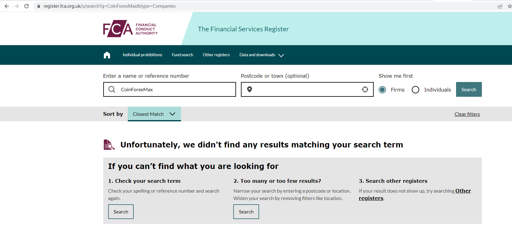 There is no any regulatory information on its website. This broker locates in U.K, but we don't find the correct information on U.K Financial Conduct Authority (FCA) matching to CoinForexMax.