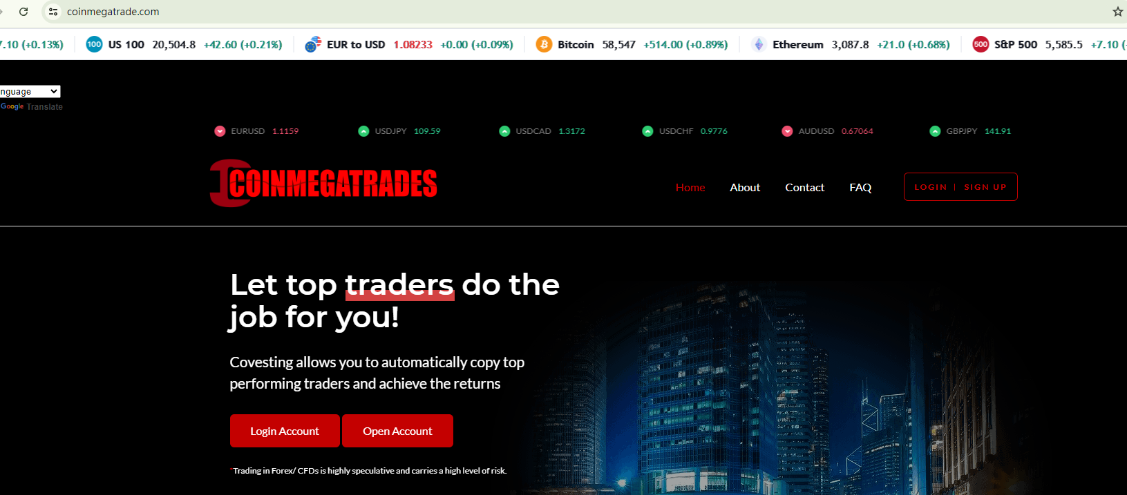 Despite its UK-based claims, COINMEGATRADES has been warned by the Financial Conduct Authority (FCA) for operating without the necessary authorization.