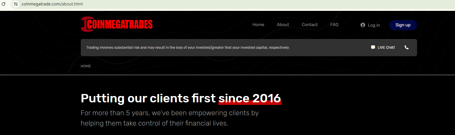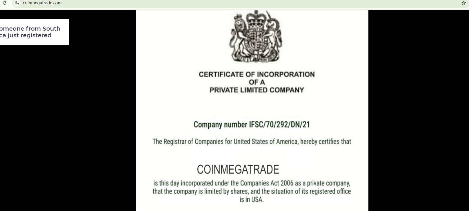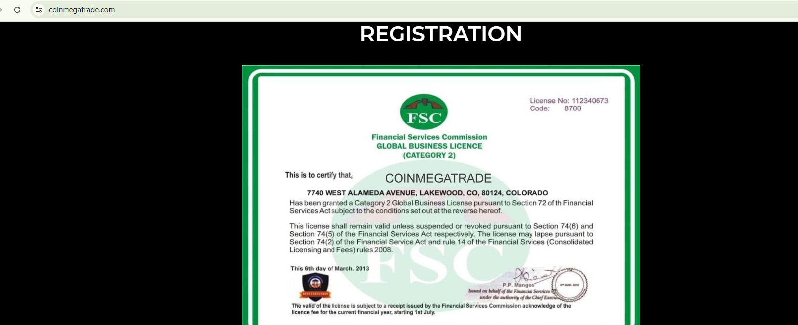 In essence, COINMEGATRADES is not regulated by any governing body. Entrusting it with investors' funds is highly risky, as there are no legal protections in place to safeguard the funds.