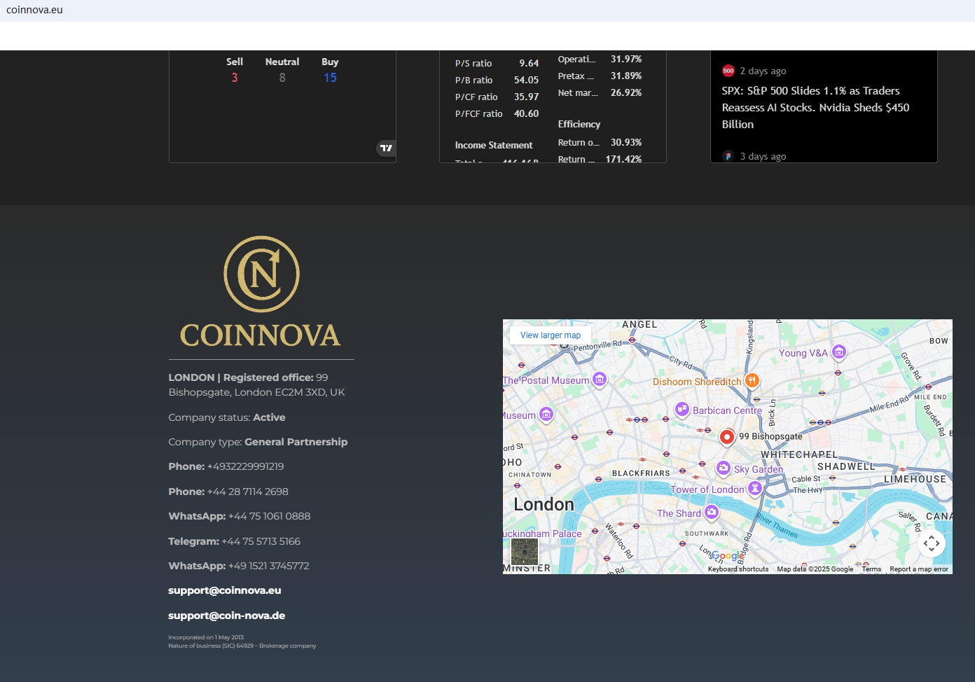 According to its website, it is located in the UK. Upon investigation, no matching information was found in the Financial Conduct Authority (FCA). In addition, the Federal Financial Supervisory Authority (BaFin) issued a warning against Coinnova for the lack of the required authorization.