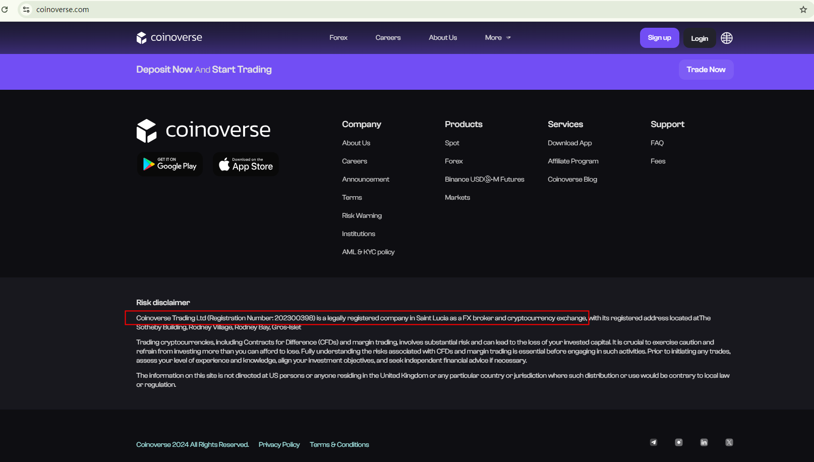 Coinoverse merely claims to be registered in St. Lucia to substantiate its legitimacy. But it is critical to note that the offshore center doesn't allow forex trading activities. Therefore, Coinoverse is not regulated at all.