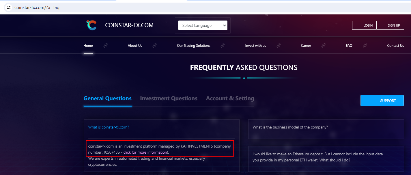 coinstar-fx.com claims to be registered under the UK Companies House (CH). While we searched for it and indeed found corresponding entires in the CH registry, it is crucial to note that having registration with the CH does not mean being authorized to provide financial services.