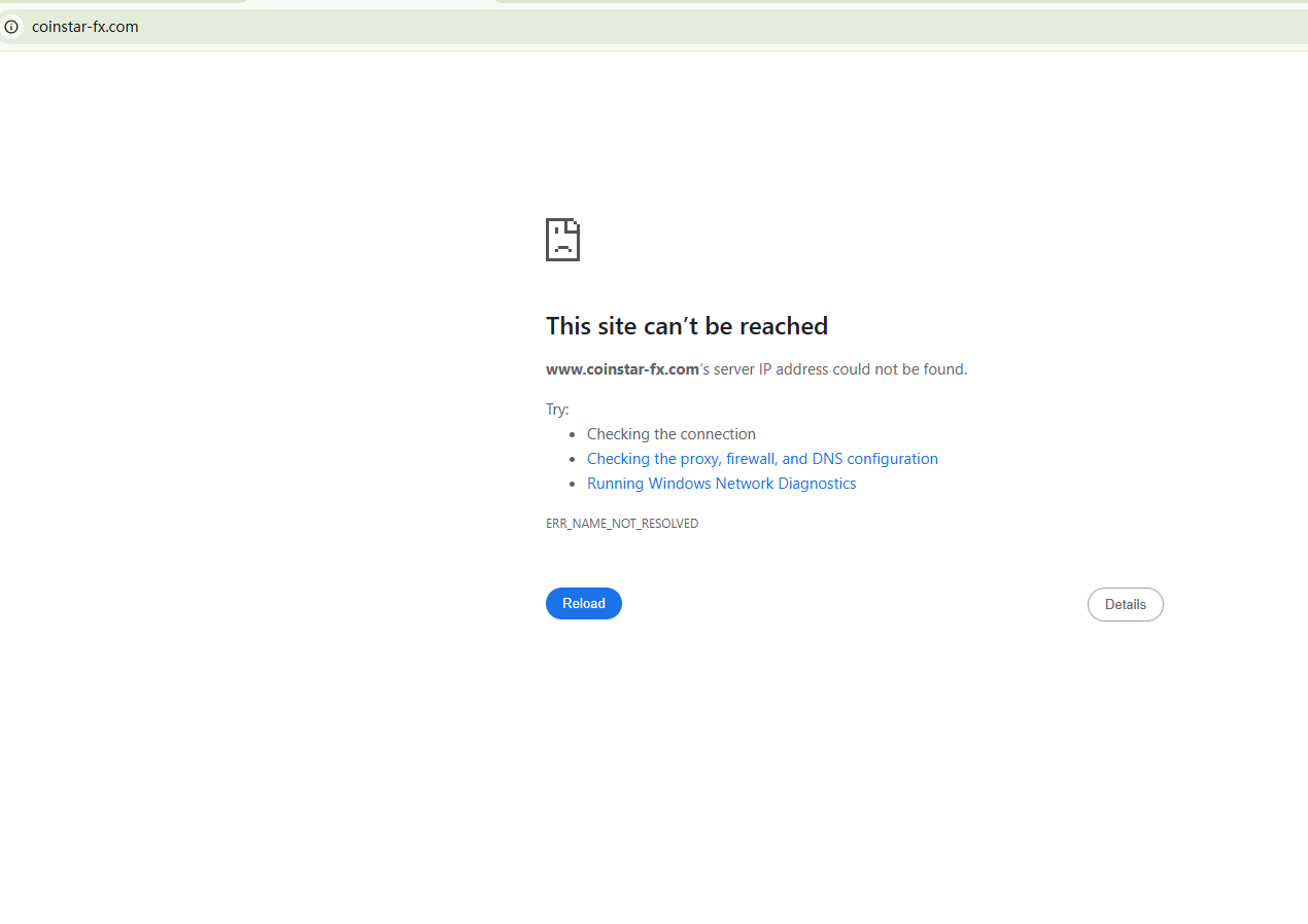 BrokersView found that the domain "https://www.coinstar-fx.com/" is currently inaccessible. This is widely regarded as a significant red flag, as the suspension of a broker's website often points to underlying regulatory or operational issues.