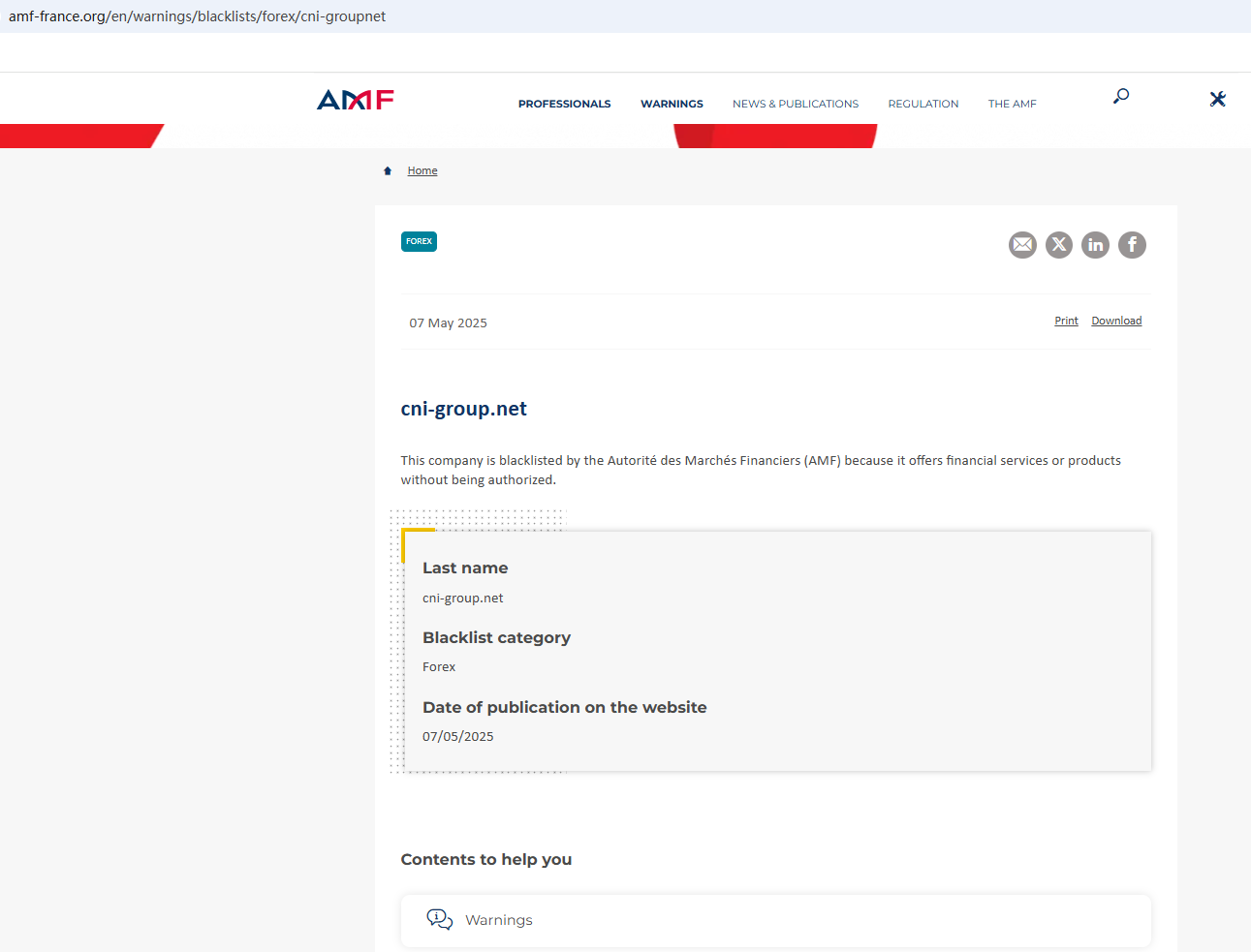 On May 7, 2025, the Financial Authority (Autorité des Marchés Financiers, AMF) added Coiny Group to warning list for it being an unauthorized company engaging in forex activities. https://www.amf-france.org/en/warnings/blacklists/forex/cni-groupnet