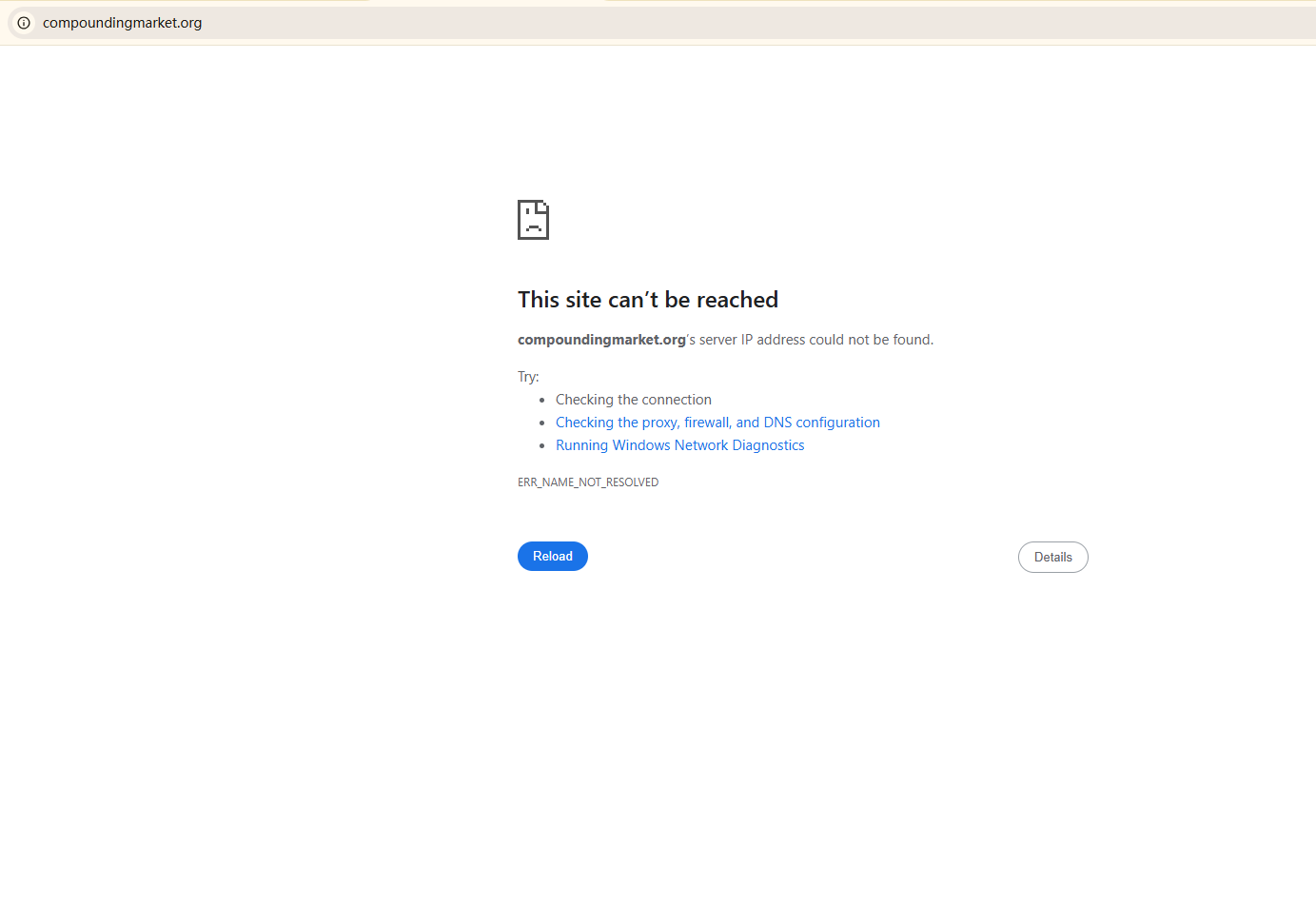 BrokersView found that the domain "https://compoundingmarket.org/" is currently inaccessible. This is widely regarded as a significant red flag, as the suspension of a broker's website often points to underlying regulatory or operational issues.