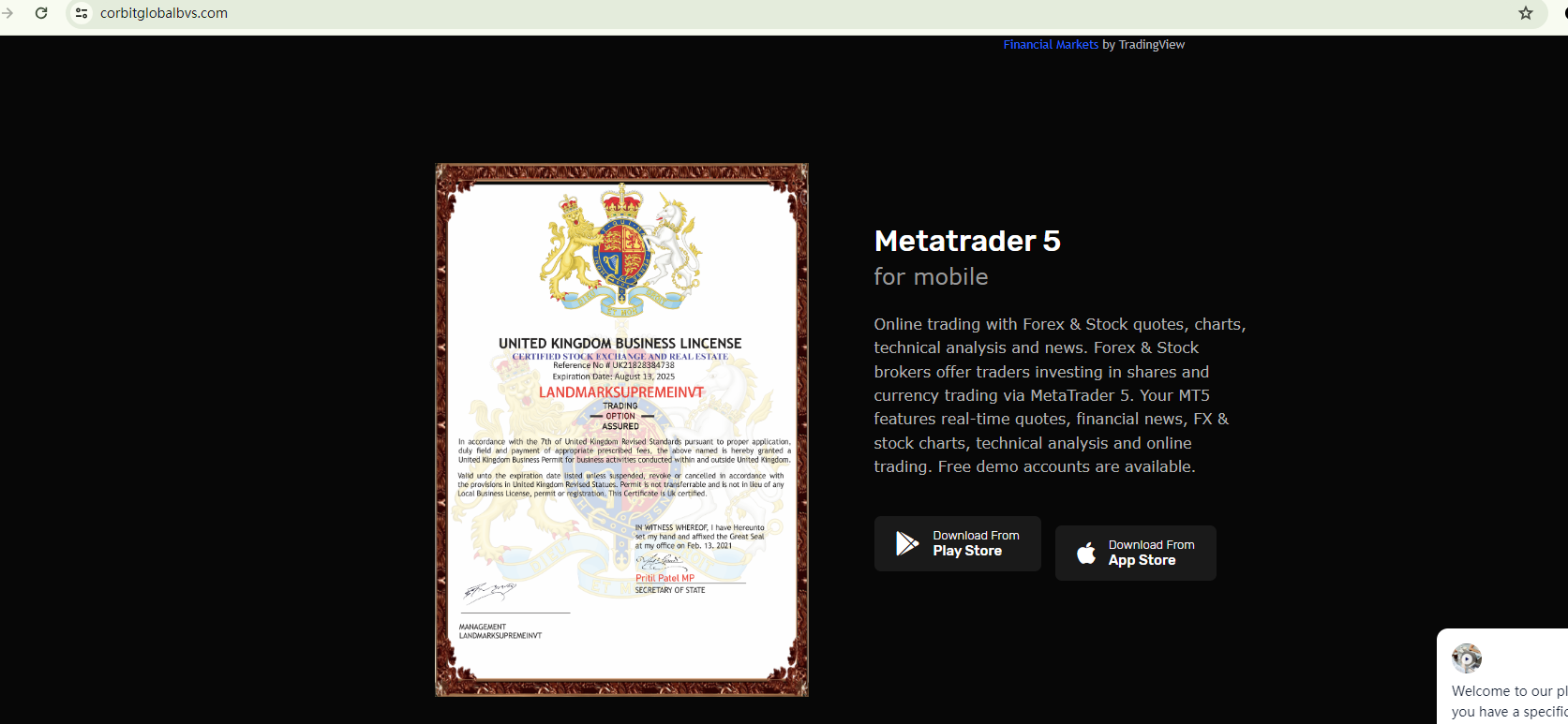 Corbit Global BVS is an online trading platform that uses a website template commonly associated with fraudulent activities. This template provides pre-written content and graphic designs, making it quick and easy to establish a professional-looking website. However, a closer examination of the website reveals several signs of potential fraud schemes.