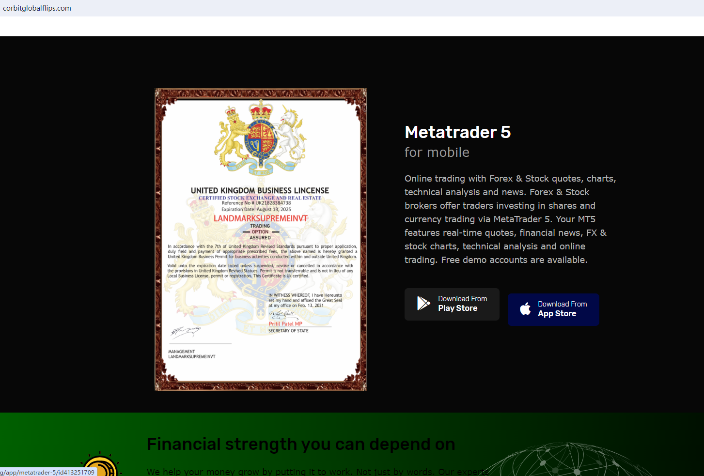 In addition, CORBIT GLOBAL FLIPS is built using a website template often associated with fraudulent activities. This template includes basic content and graphic designs, allowing operators to quickly set up an online platform that appears professional.