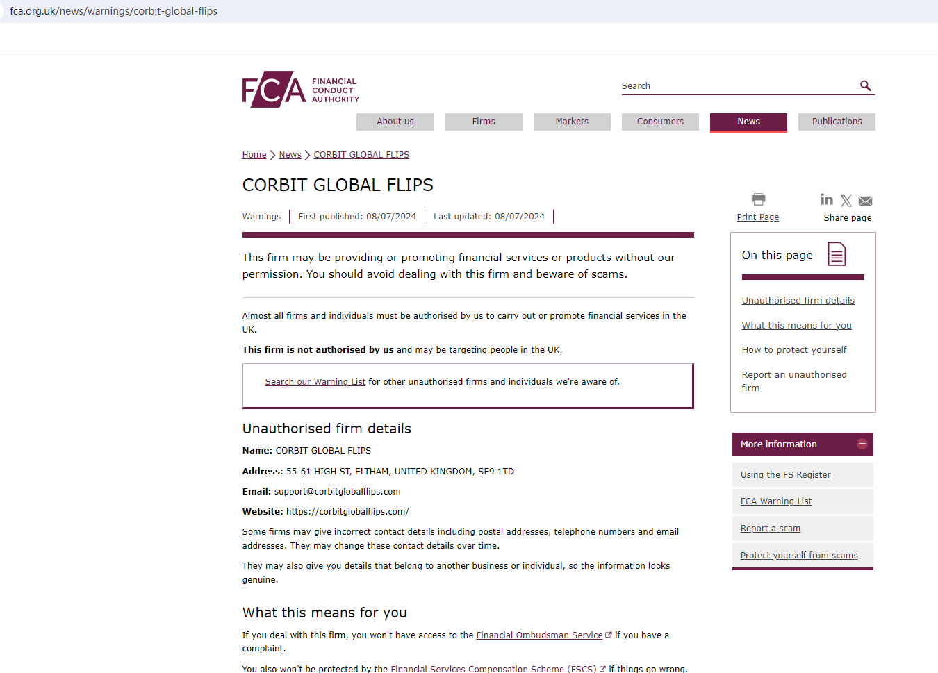 In essence, CORBIT GLOBAL FLIPS is not regulated by any governing body. Entrusting it with investors' funds is highly risky, as there are no legal protections in place to safeguard the funds.