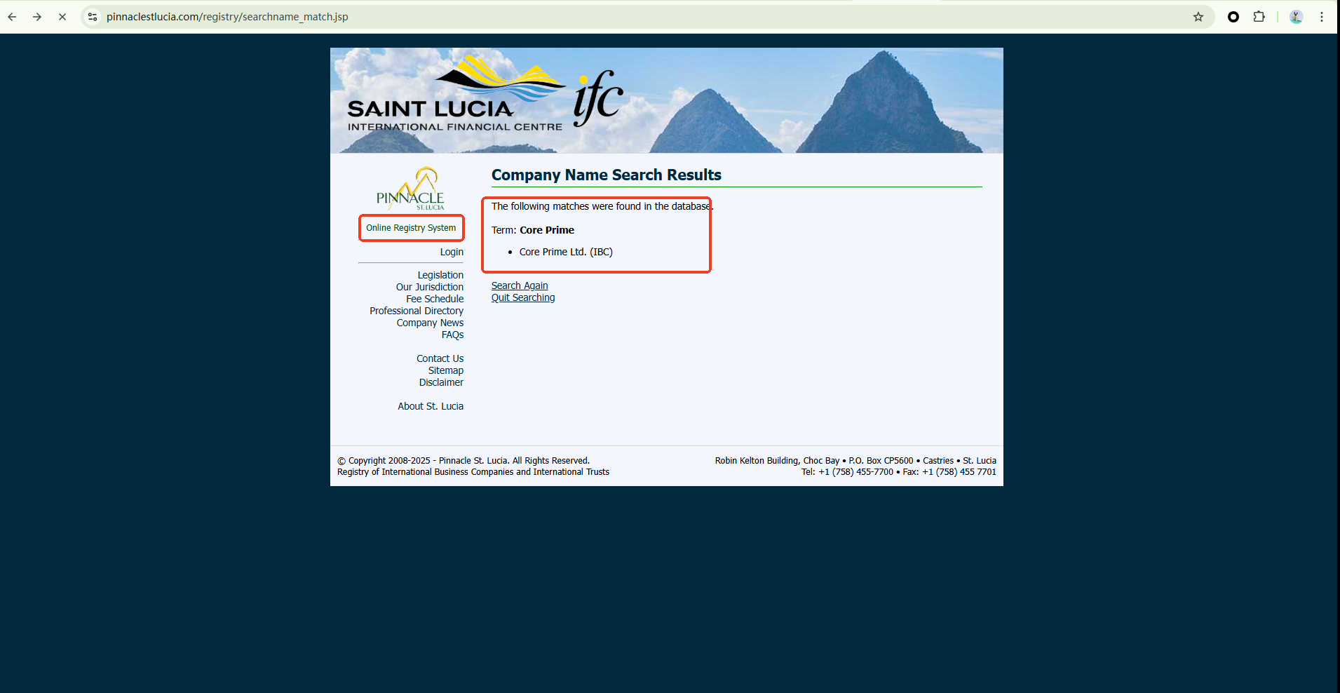 Although Core Prime claims to be highly regulated, it fails to hold any major regulatory credentials. The only relevant information we could find is that Core Prime claims to be registered and regulated by the Saint Lucia International Financial Centre (IFC). The company's name is indeed registered with the Saint Lucia IFC as an IBC company. However, the Saint Lucia IFC is an offshore jurisdiction that does not licence forex trading, meaning the company is effectively unregulated and poses a significant risk to investors. Therefore, Brokersview has identified it as a scam.